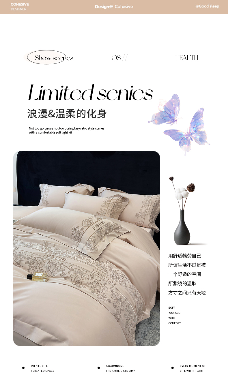(总)家居1号家纺 2025新款长绒棉边条刺绣四件套威尼斯系列,威尼斯-高级灰,威尼斯-蝴蝶粉,威尼斯-香槟金,威尼斯-香芋紫,威尼斯-象牙白,威尼斯-月光蓝