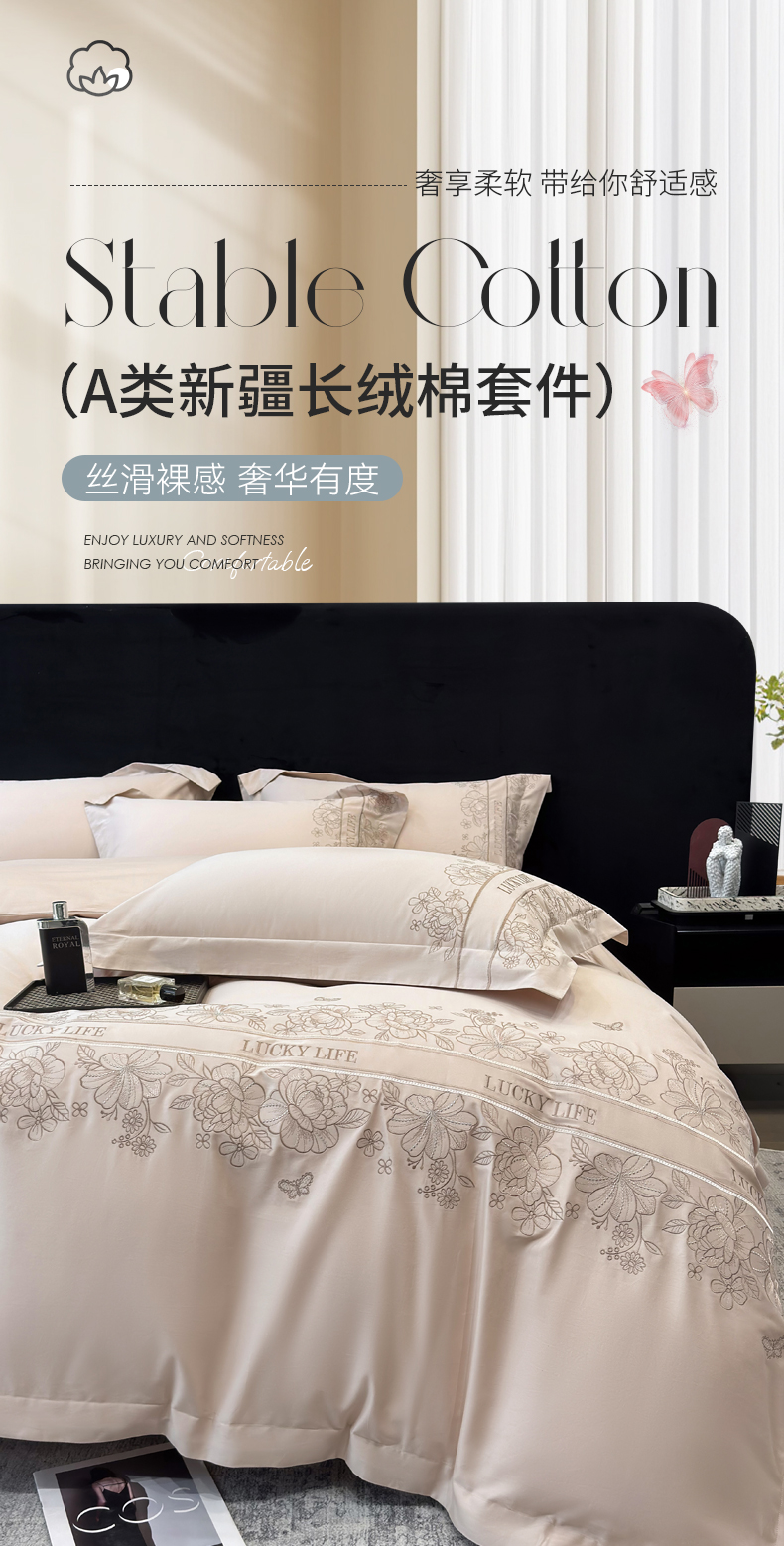 (总)家居1号家纺 2025新款新疆长绒棉宽边刺绣四件套-优雅恬静,优雅恬静-翡翠玉,优雅恬静-公主粉,优雅恬静-宫廷棕,优雅恬静-太空灰,优雅恬静-温馨蓝