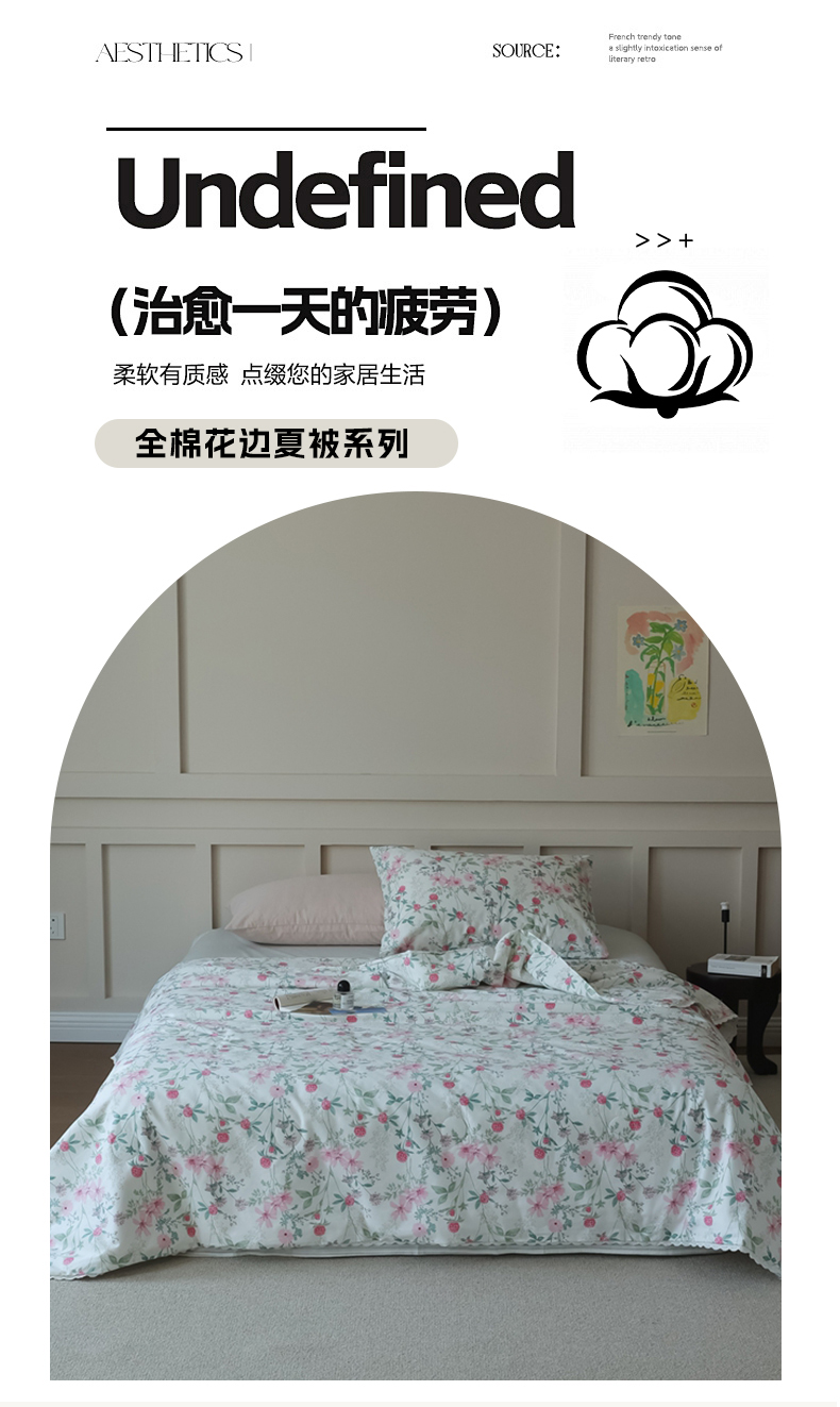 当前位置: 91家纺网 > 商品网购 > 床品套件 > 四件套 > 夏被四件套 > 棉眠 2025新款纯棉花边夏被套件 漫步花庭
