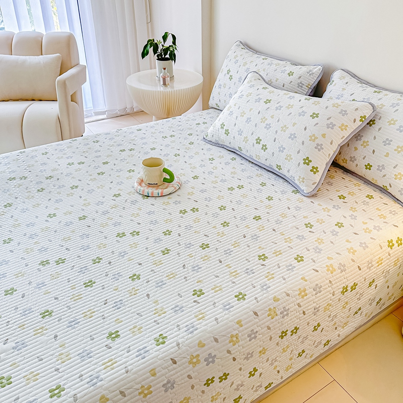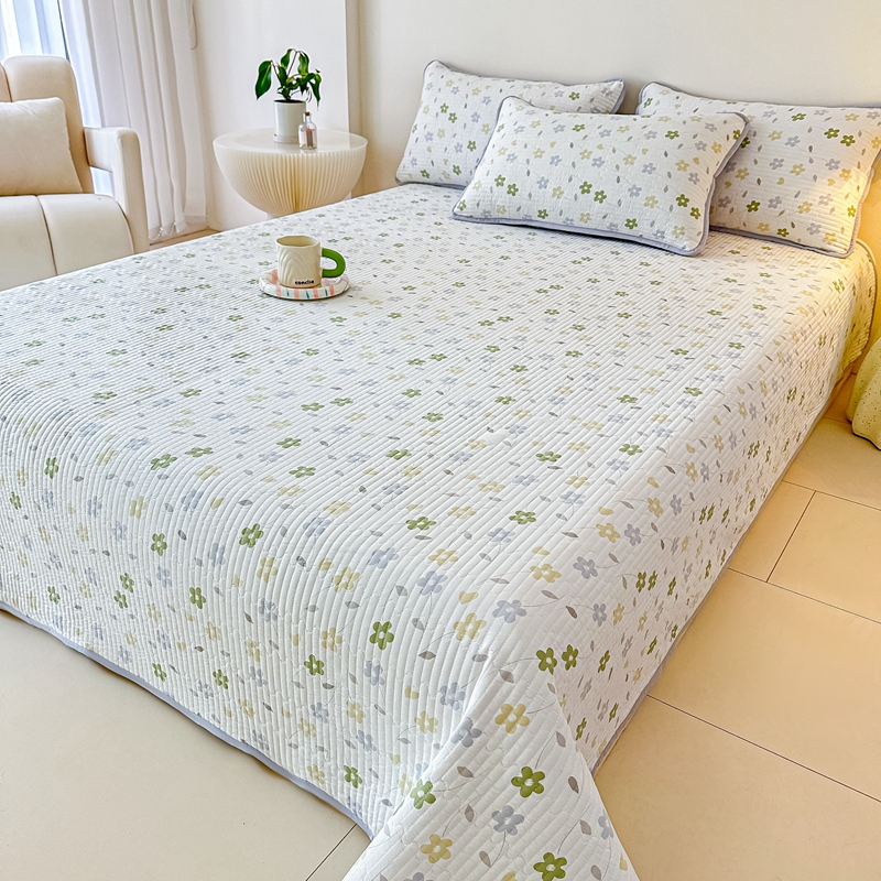 橘夏家纺2025爆款棉感珍珠绸印花床盖三件套 朵朵花林--雅韵灰