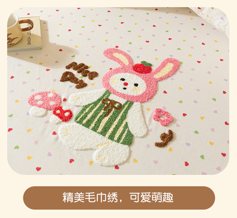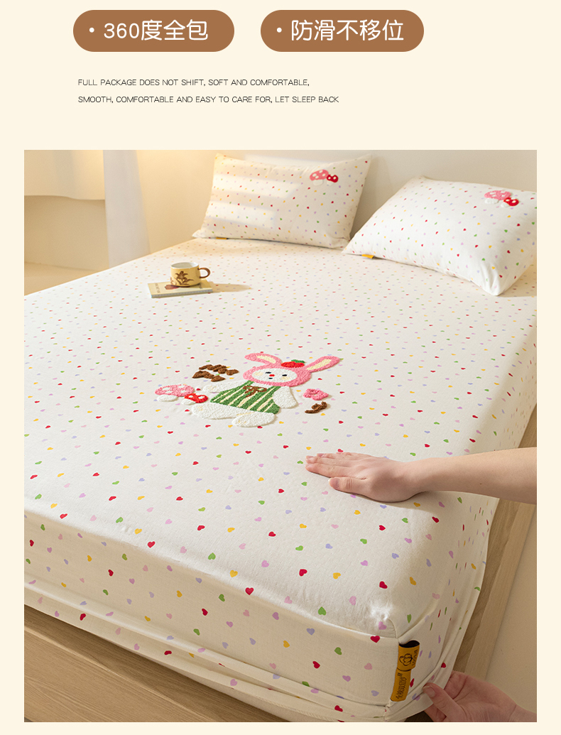 商品名称:居眠 2025新款全棉纯棉云感皱皱纱毛巾绣床笠 兔兔小姐