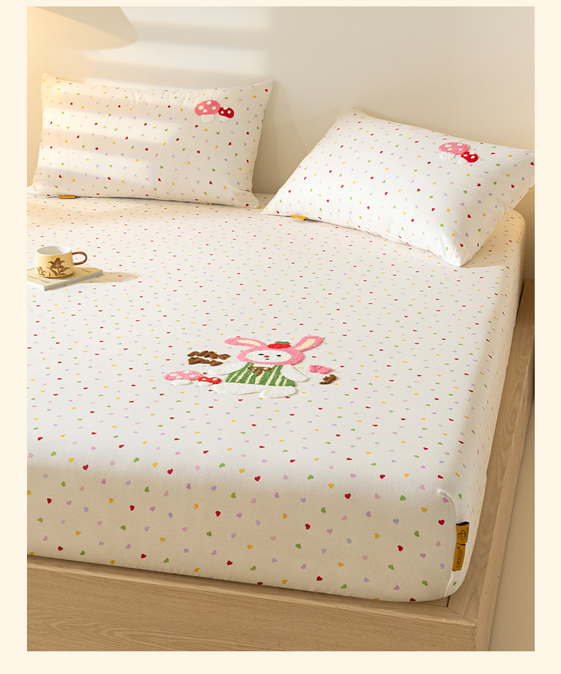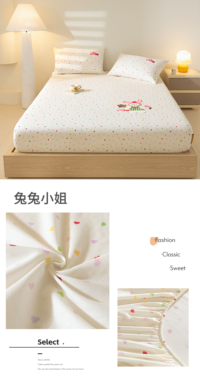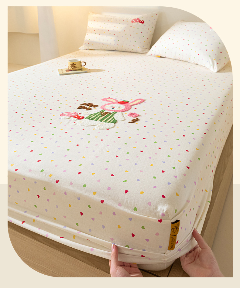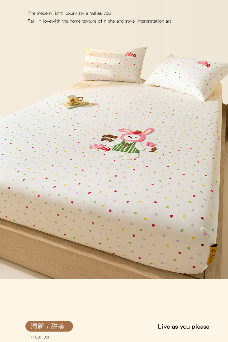 (总)居眠 2025新款A类水洗棉印花夹棉床笠,爱心小熊,波点南瓜,搞怪派对,花园小熊,快乐小汪,萌宠小兔,奇幻兔兔,情系花兔,郁金香紫,字母小狗