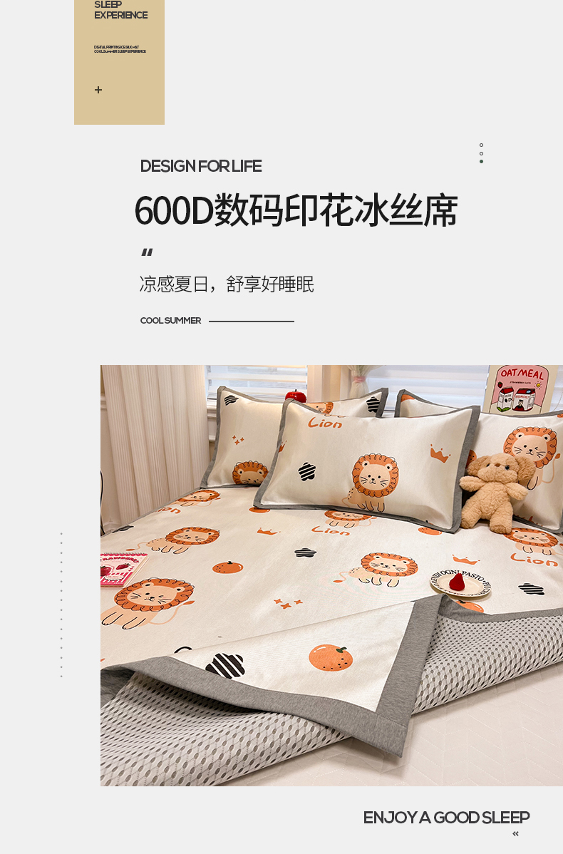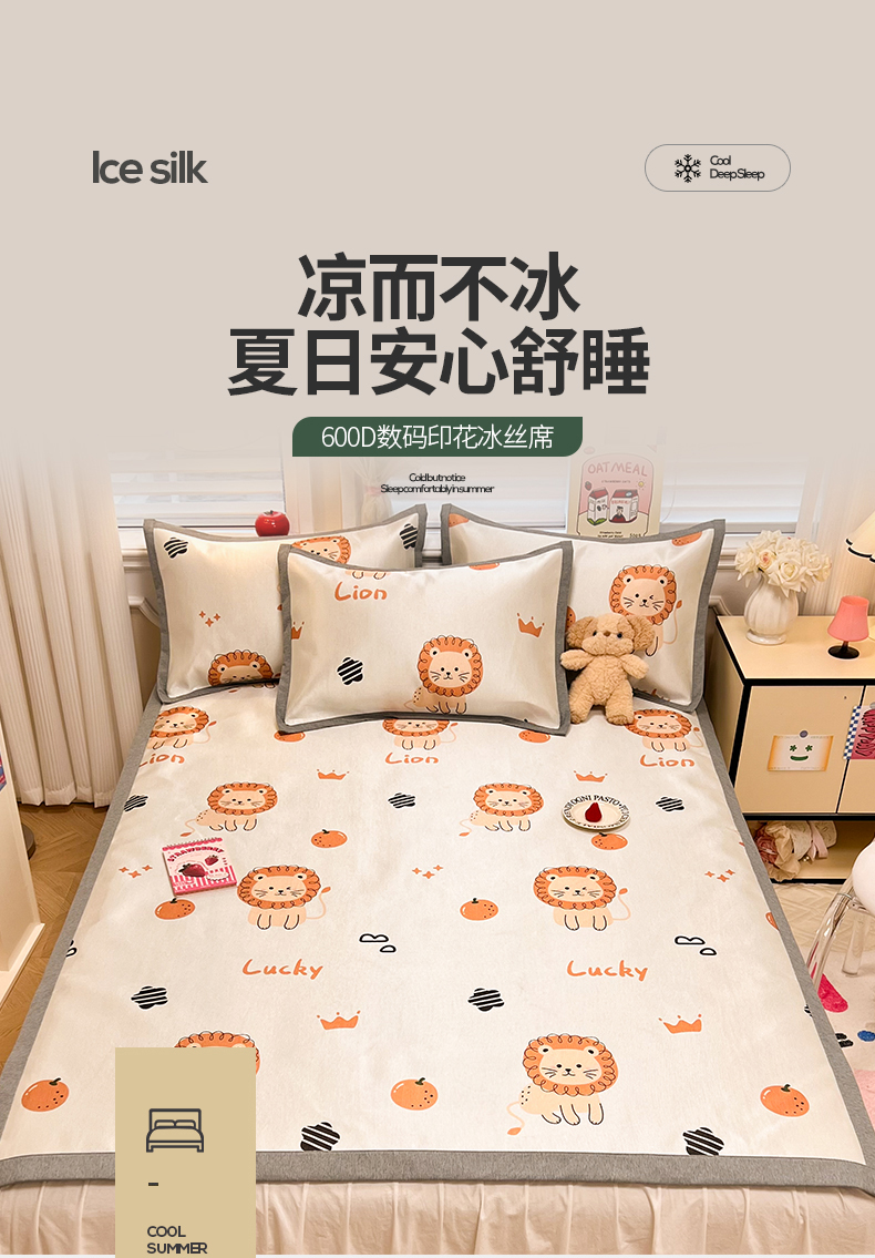 懒猫 2025新款600D数码印花冰丝凉席席子 狮子乐园
