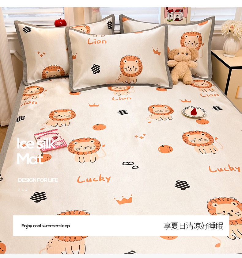 商品名称:懒猫 2025新款600D数码印花冰丝凉席席子 狮子乐园