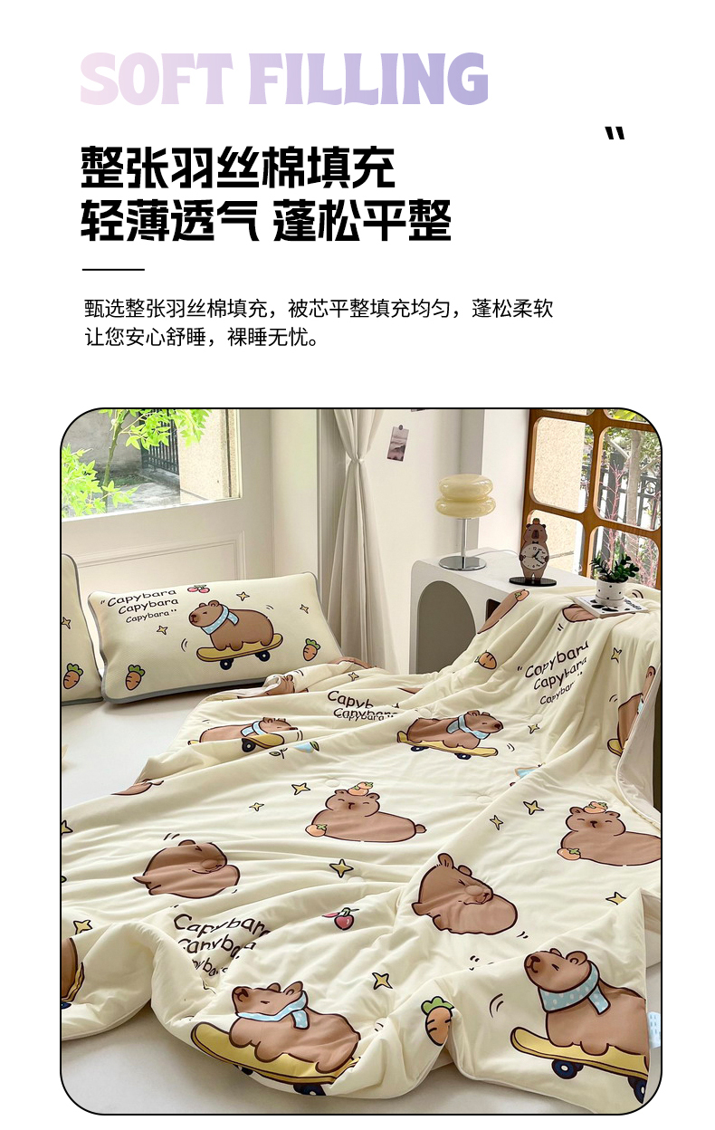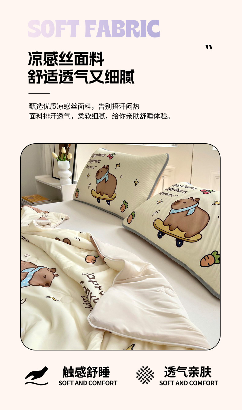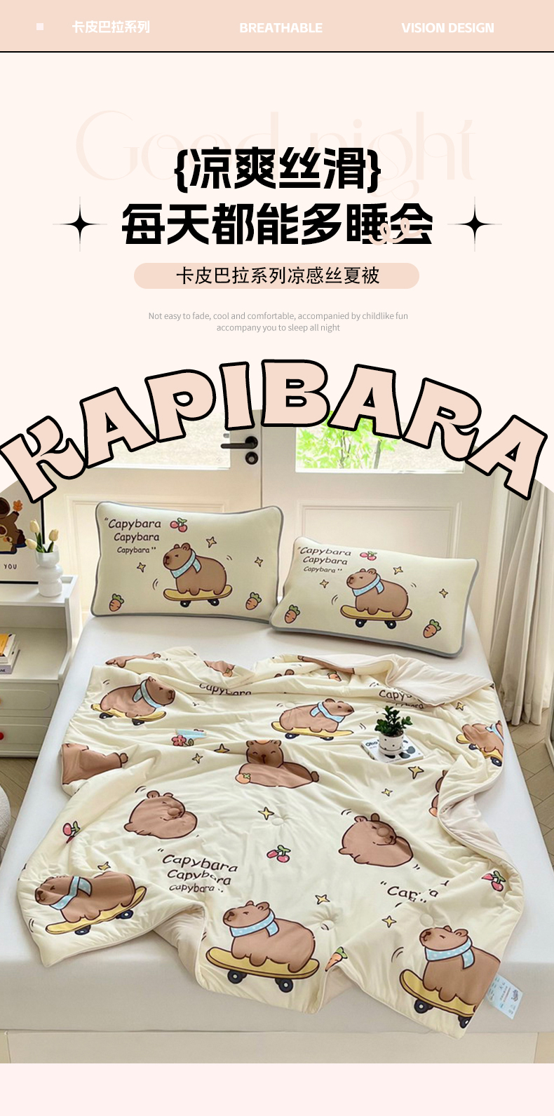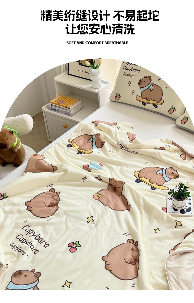 商品名称:蘭菲家纺 2025新款凉感丝卡皮巴拉夏被 爱滑板