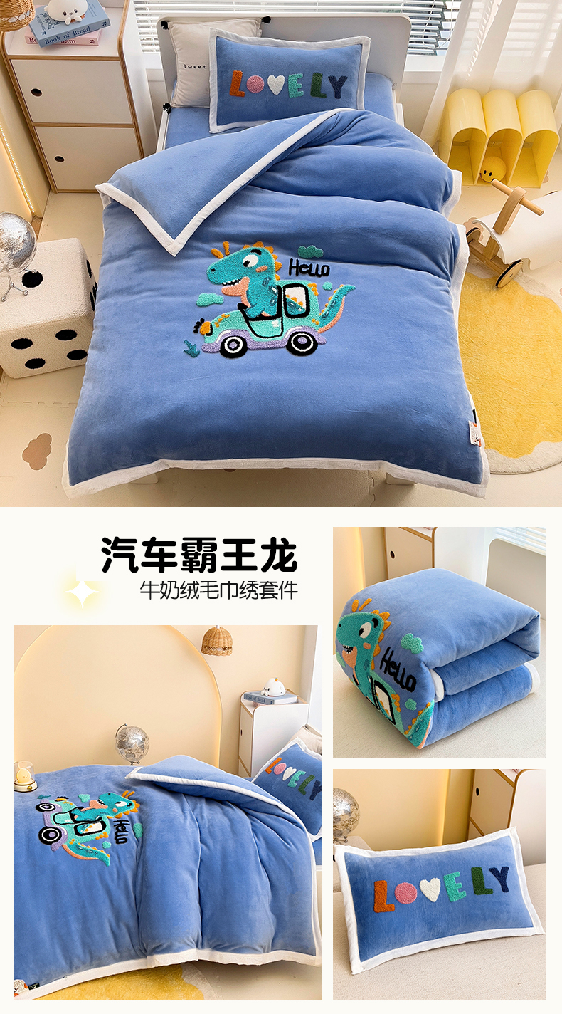 (总)梵赫 2025新款牛奶绒毛巾绣儿童幼儿园被套被芯组合,滑板长颈鹿,骑士兔兔,汽车霸王龙,挖机小伙伴,玩偶兔兔