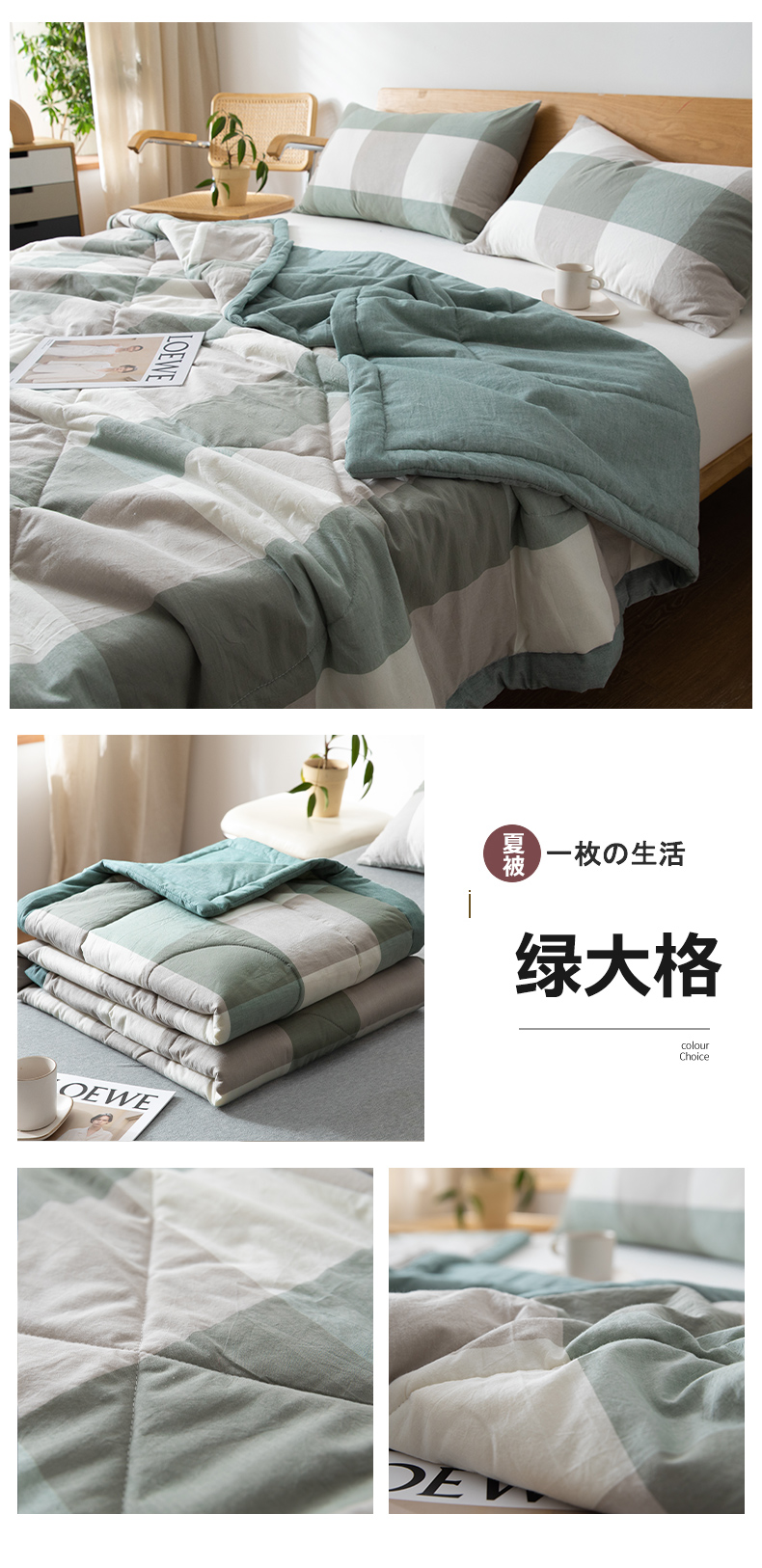 被子 > 夏被 > 缦绣阁家纺 2025春夏新款无印风格子夏凉被亲肤柔软裸睡级色织水洗棉大豆夏被空调被可机洗凉感夏被 绿大格
