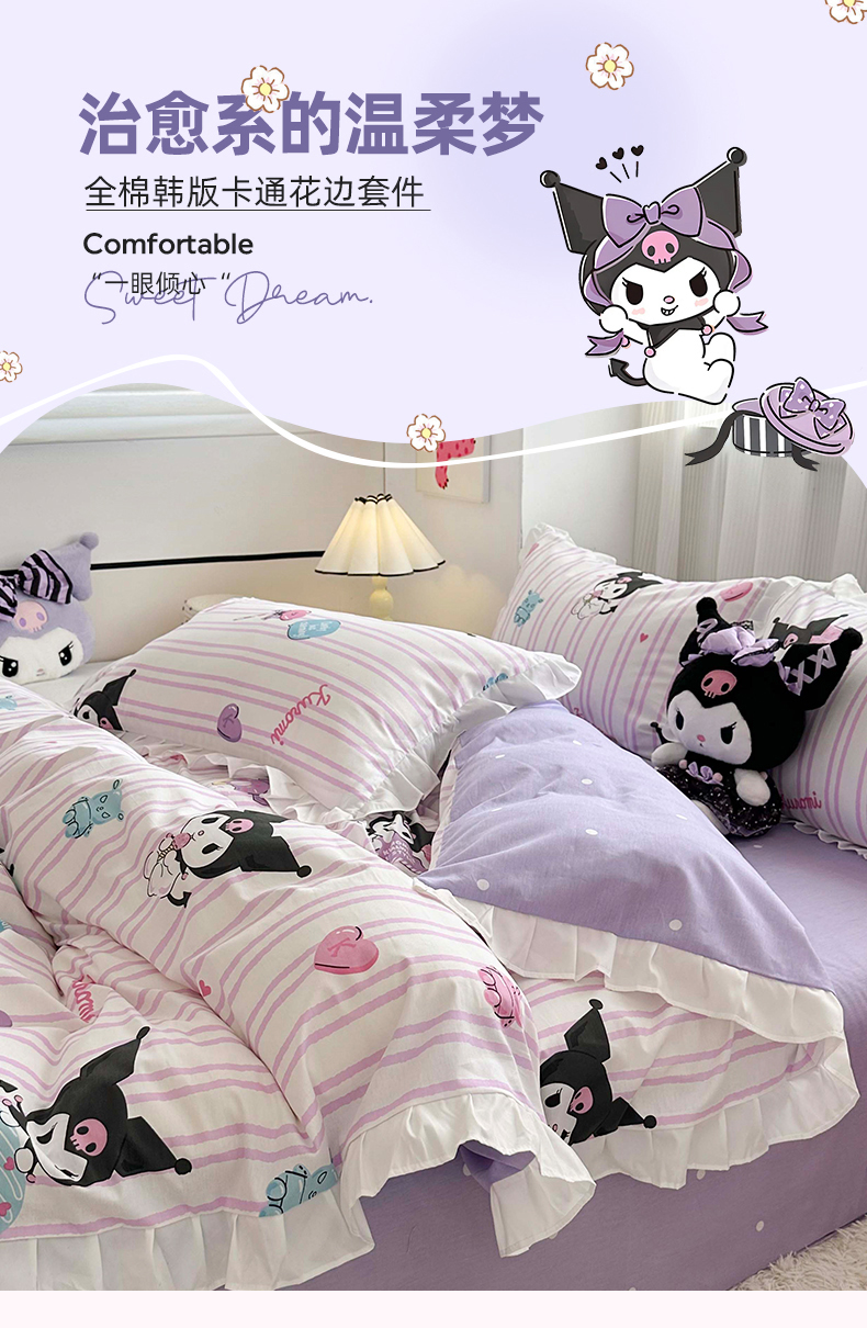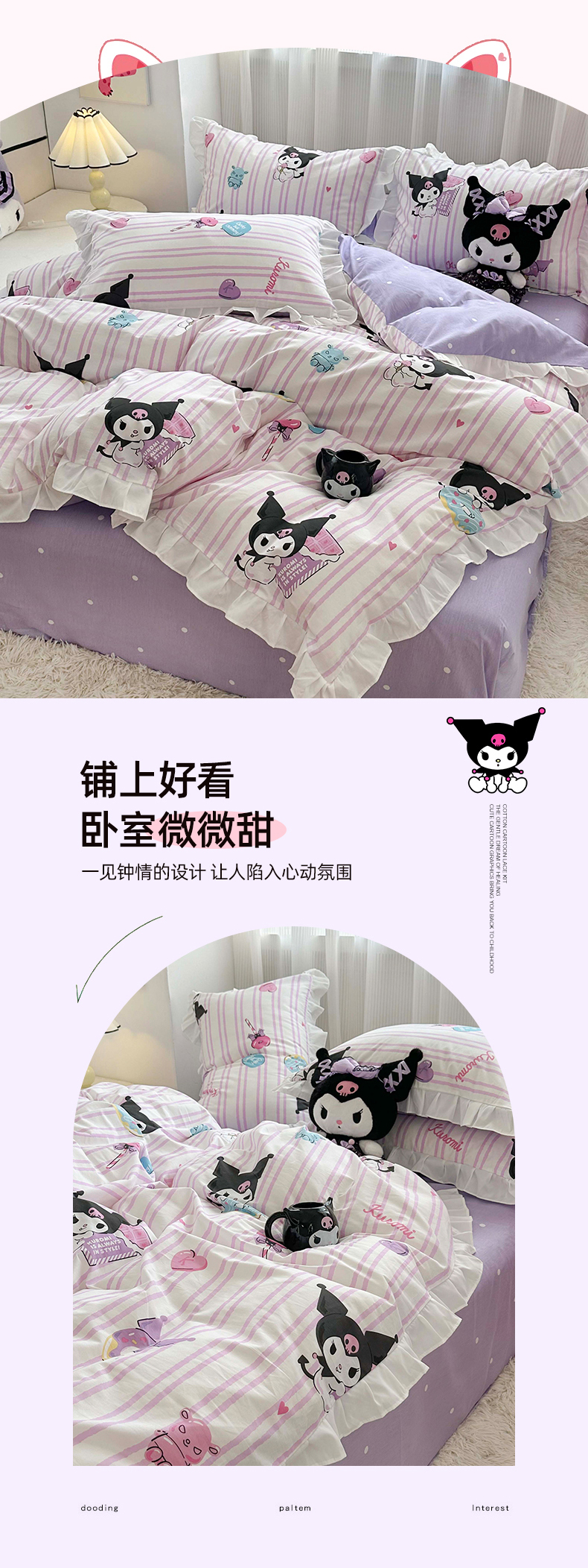 当前位置: 91家纺网 > 商品网购 > 床品套件 > 四件套 > 全棉普通四件套 > 玉元坊 2025新款凯蒂猫全棉库洛米纯棉床裙公主风花边被套四件套三件套(第三批)-花边款 花边款-库洛米条纹