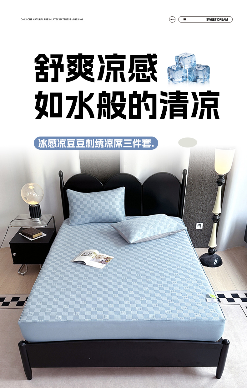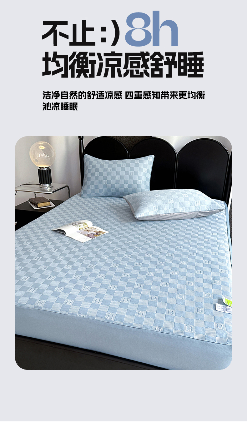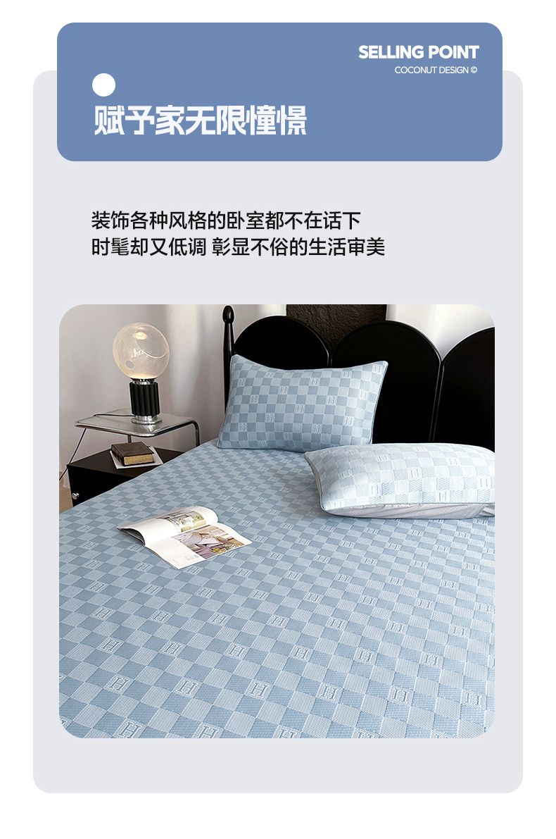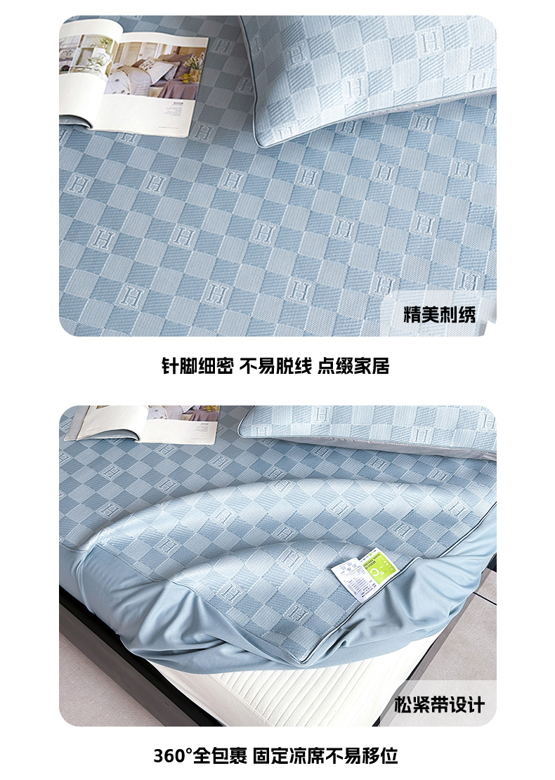 商品名称:网客家纺 2025新款凉豆豆凉感麻绳床笠款凉席 H款-湖水蓝