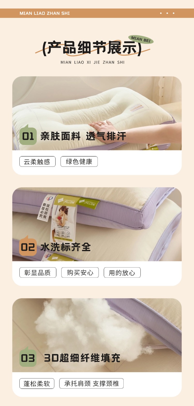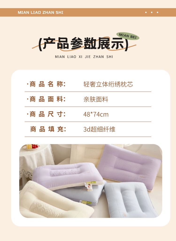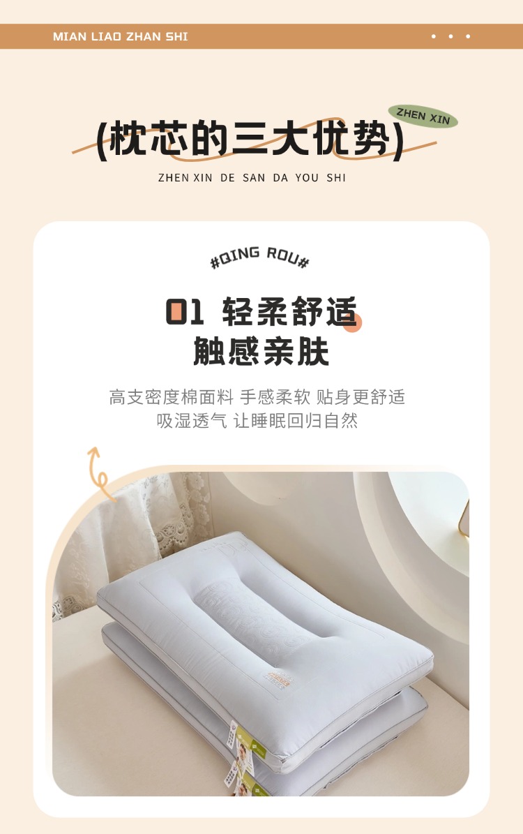 商品名称:(总)幸运草 2025新款轻奢立体亲肤枕头 成人家用护颈椎助眠枕芯