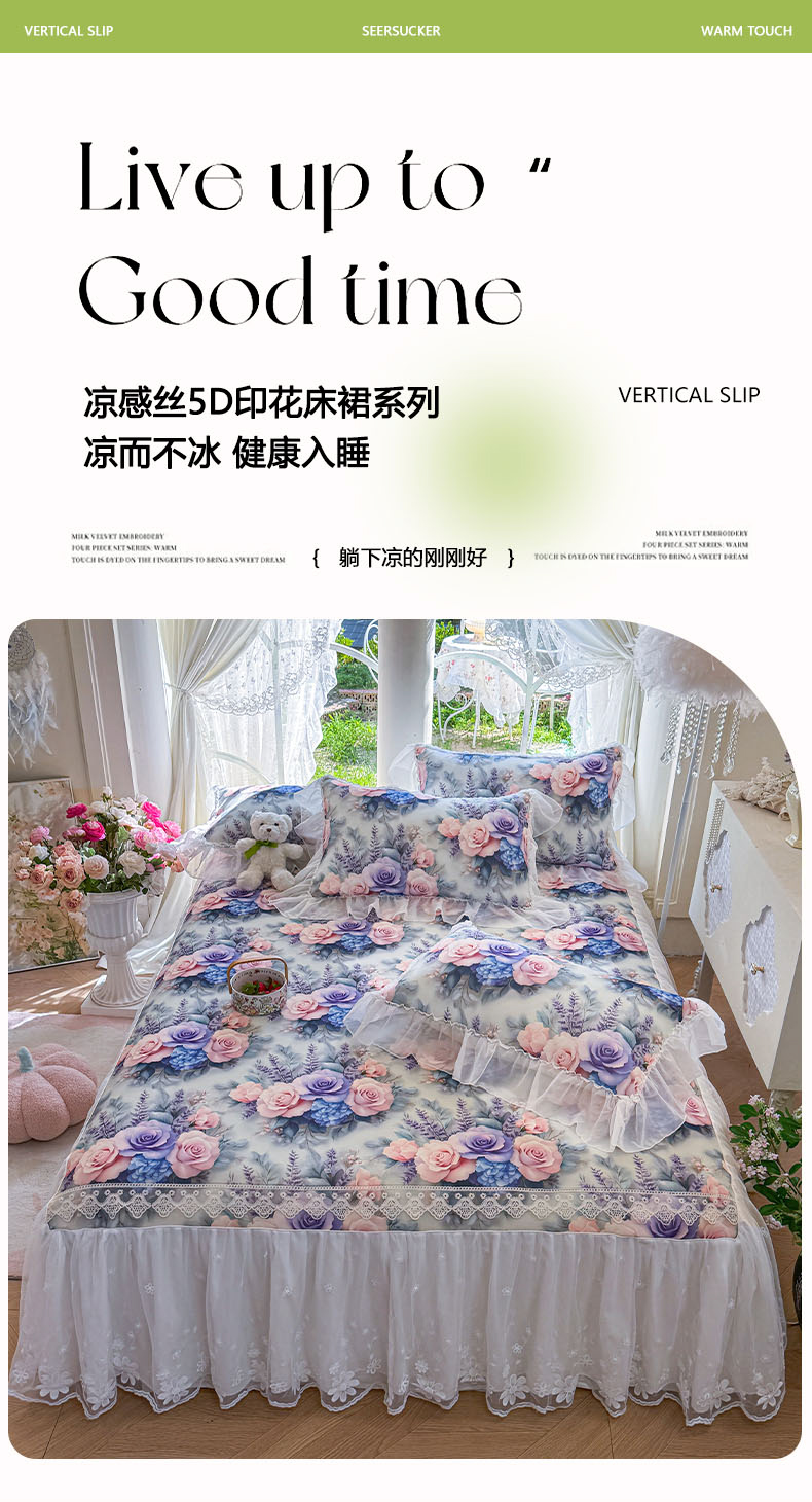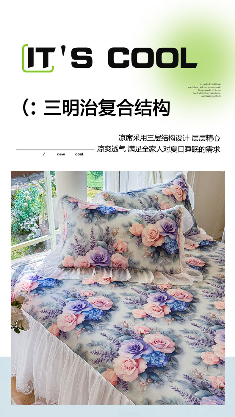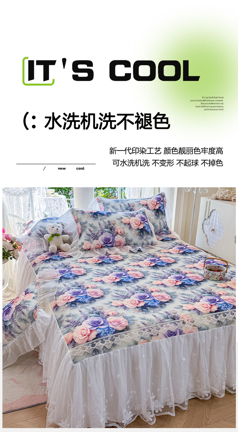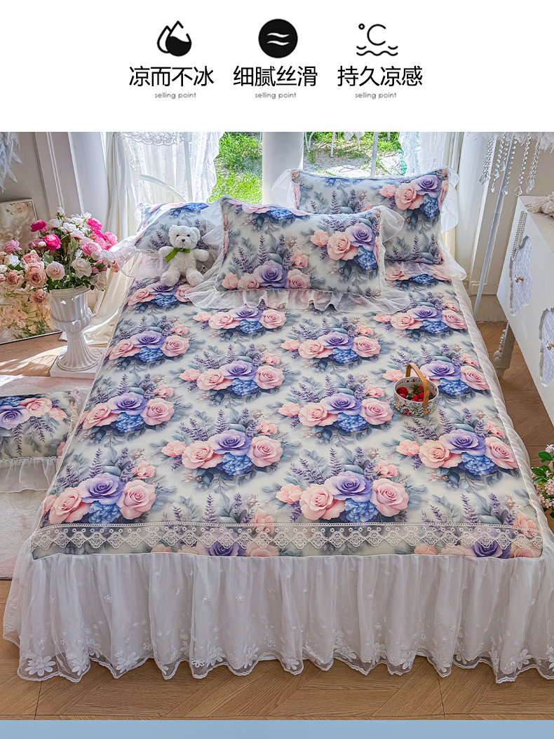 商品名称:罗艺轩 2025新款冰丝5D印花床裙凉席席子 花开朵朵