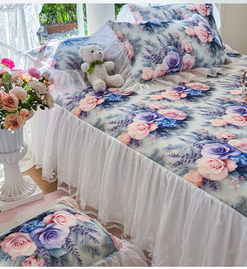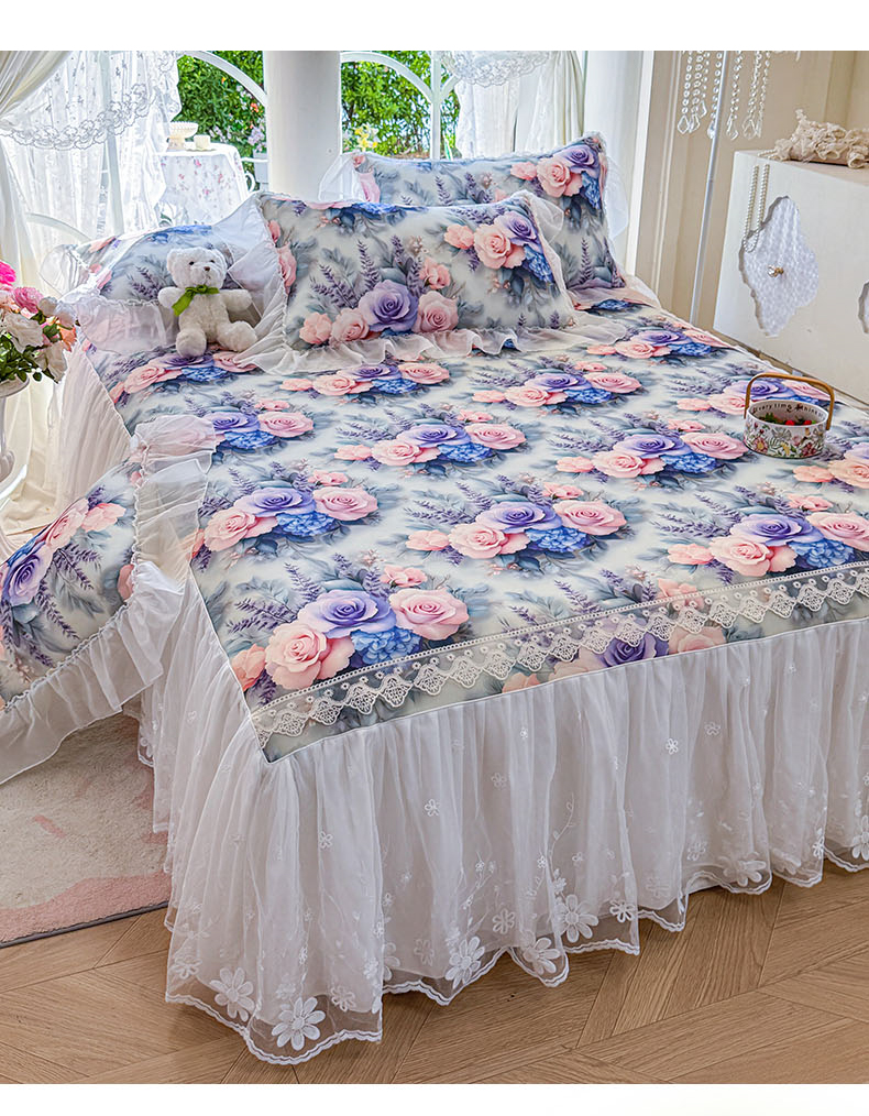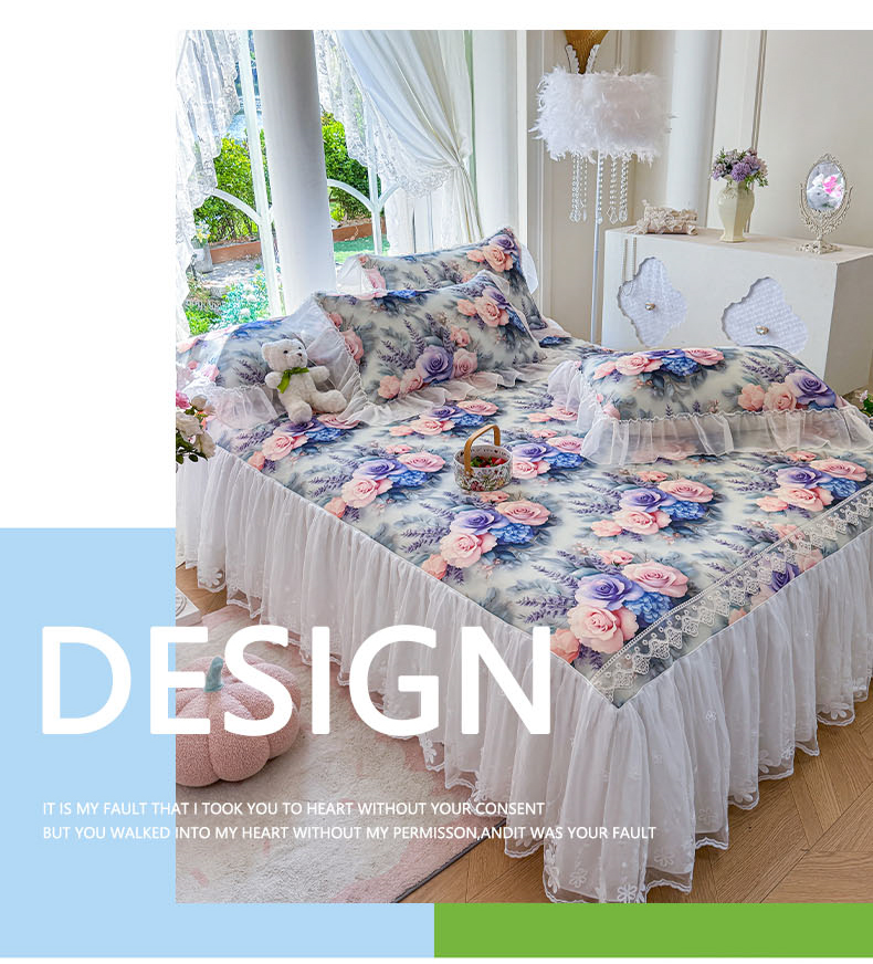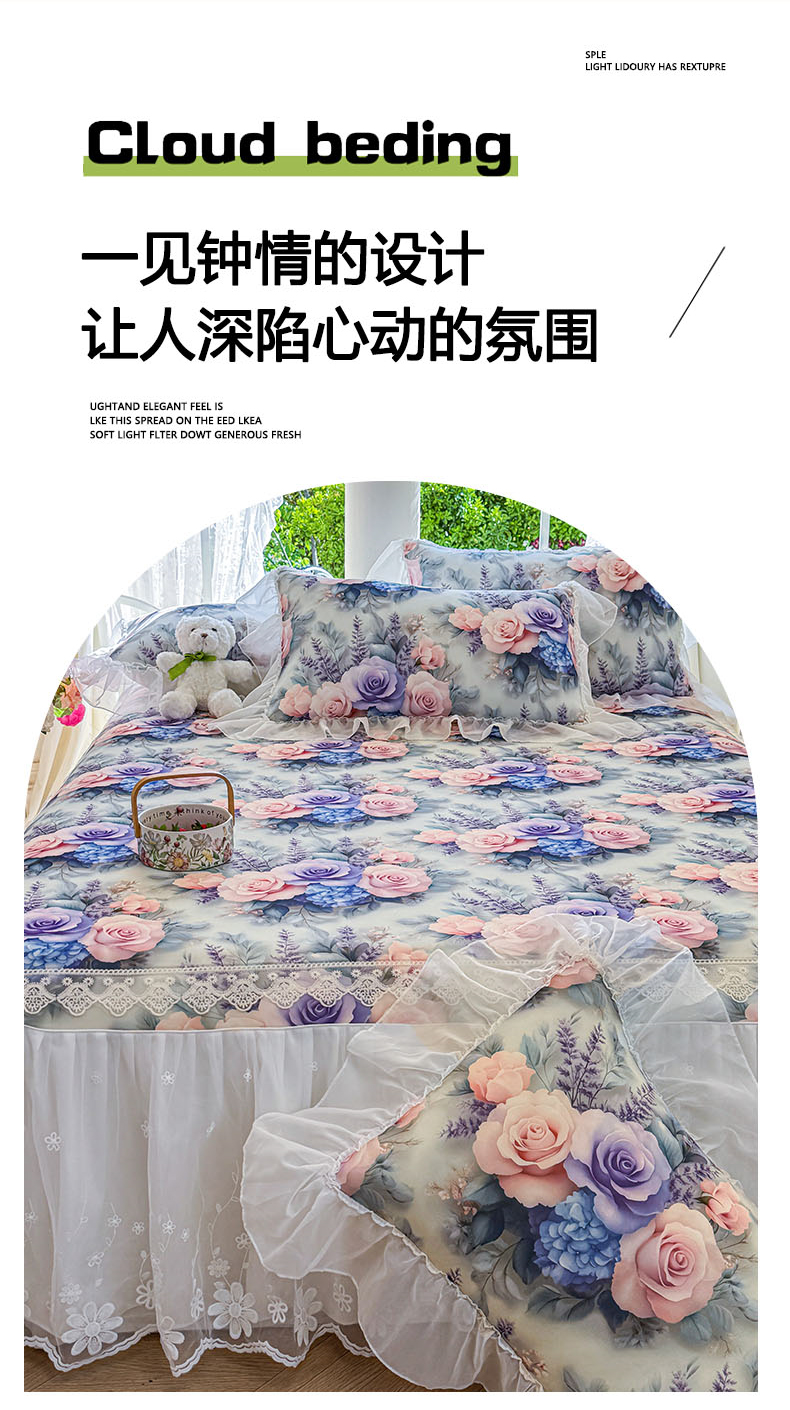 罗艺轩 2025新款冰丝5D印花床裙凉席席子 花开朵朵