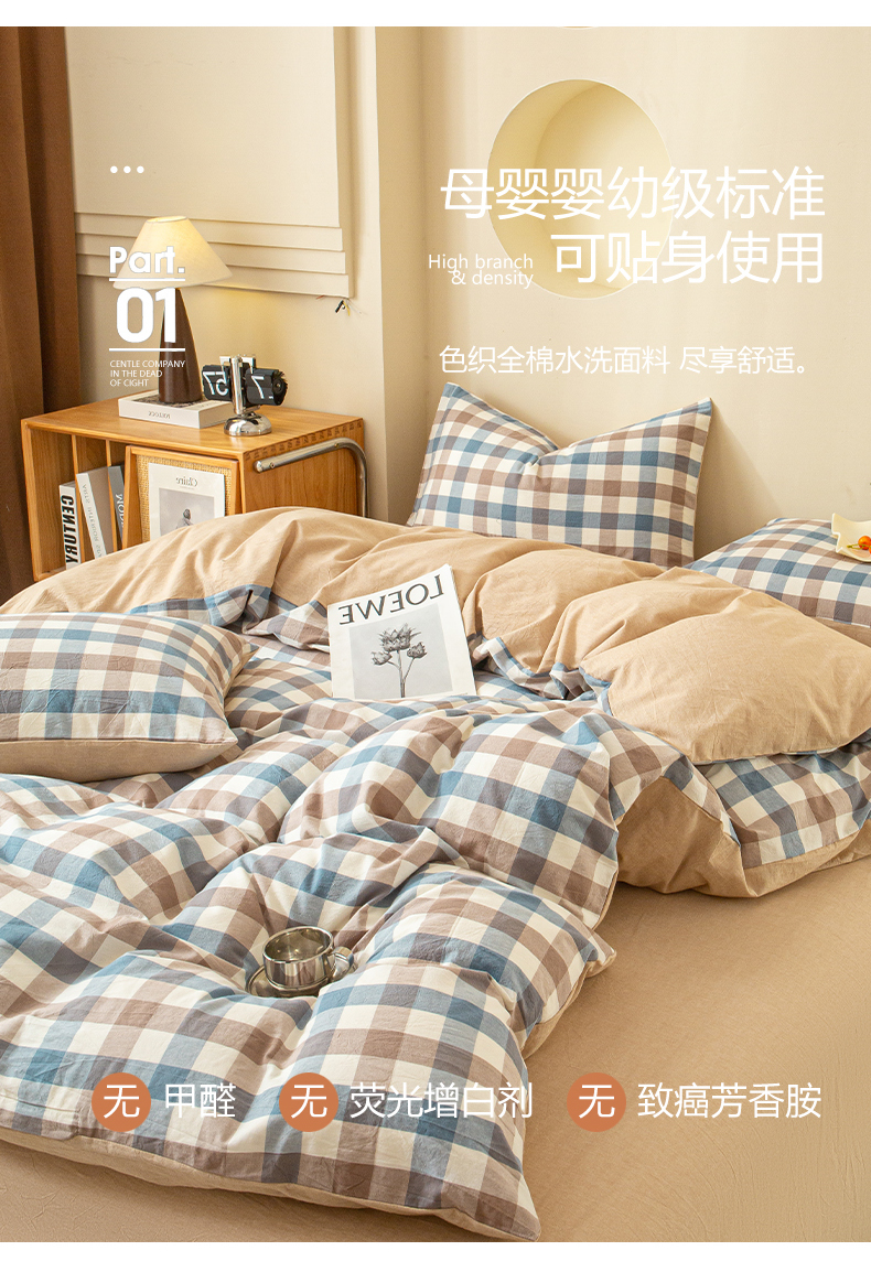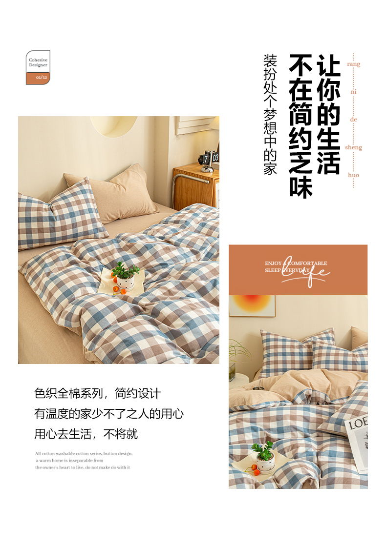 商品名称:优米家纺 2025新款色织全棉纯棉40支水洗四件套及床单系列-四件套 麦丫咖