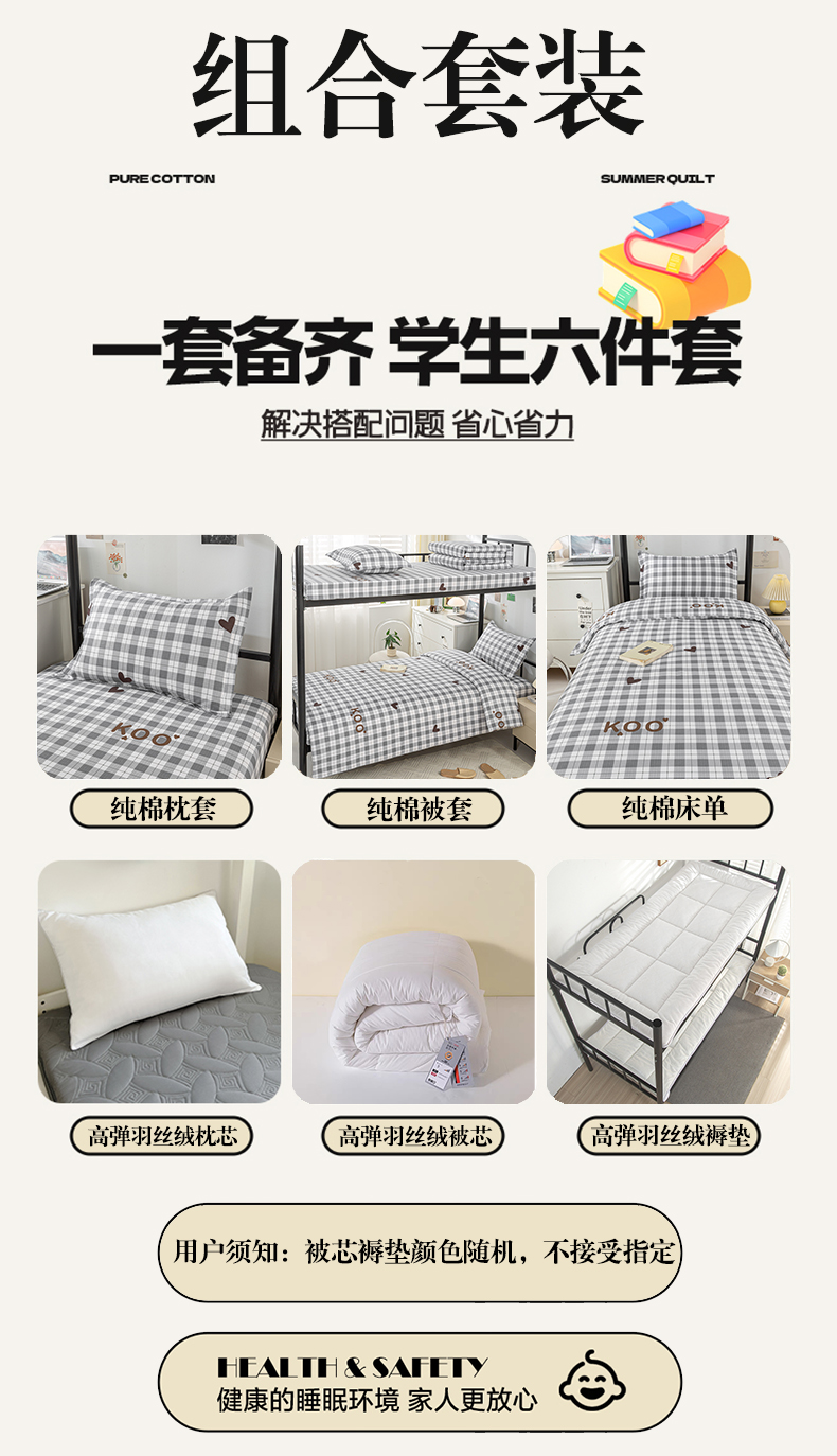 当前位置: 91家纺网 > 商品网购 > 床品套件 > 六件套 > 上学郎家居 2025新款全棉纯13372学生100棉单人床六件套学生宿舍床上用品系列二 欧米娜-米白