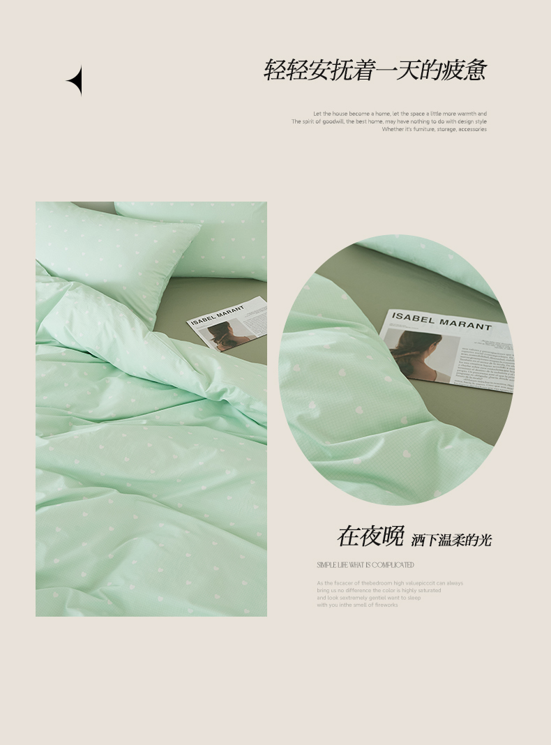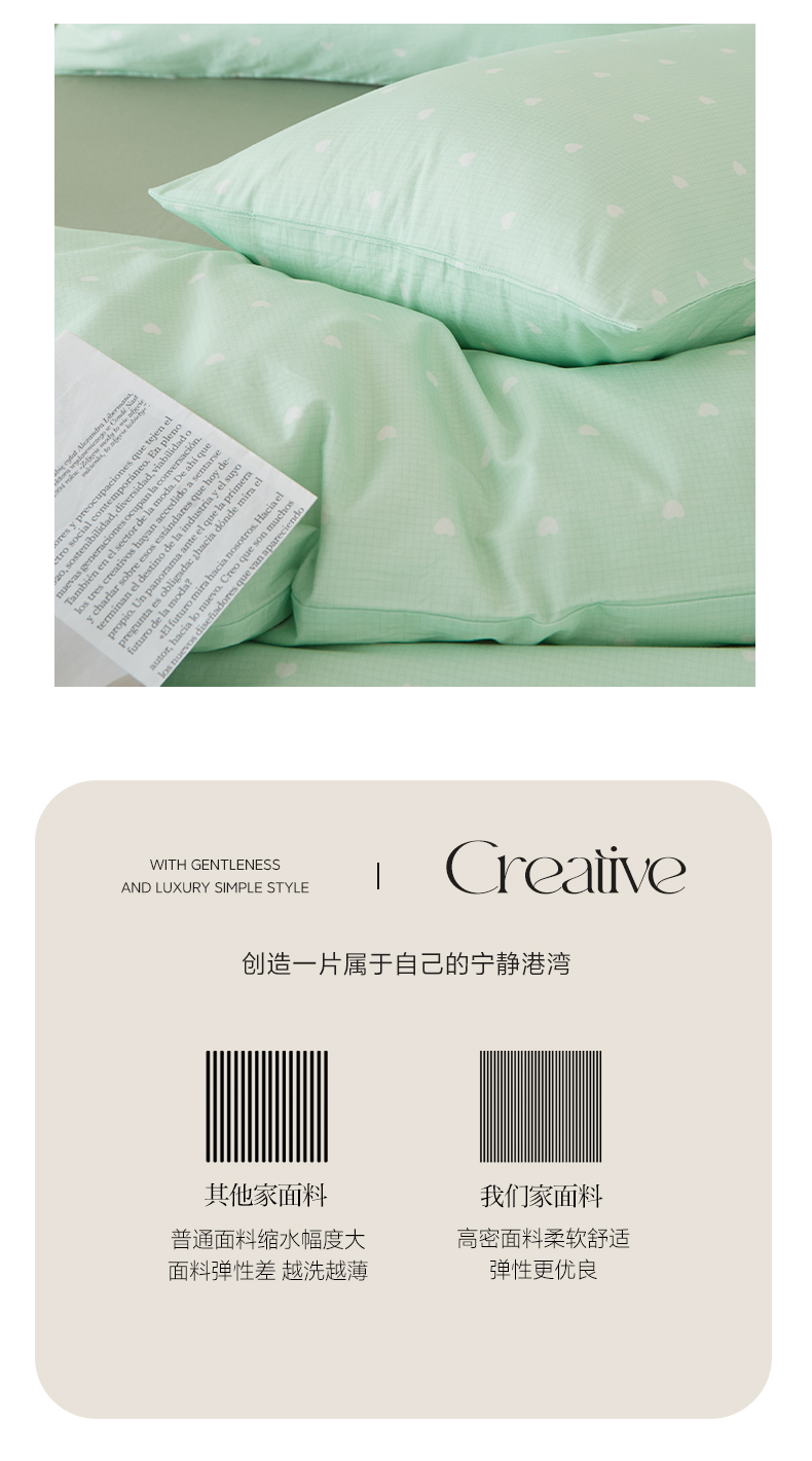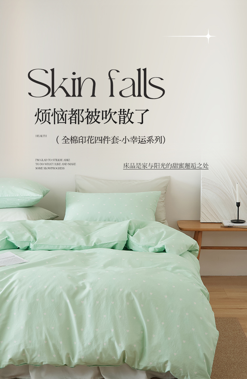 当前位置: 91家纺网 > 商品网购 > 床品套件 > 四件套 > 全棉普通四件套 > EH家居 2025春夏新款40s全棉纯棉印花四件套-小幸运 青色爱心