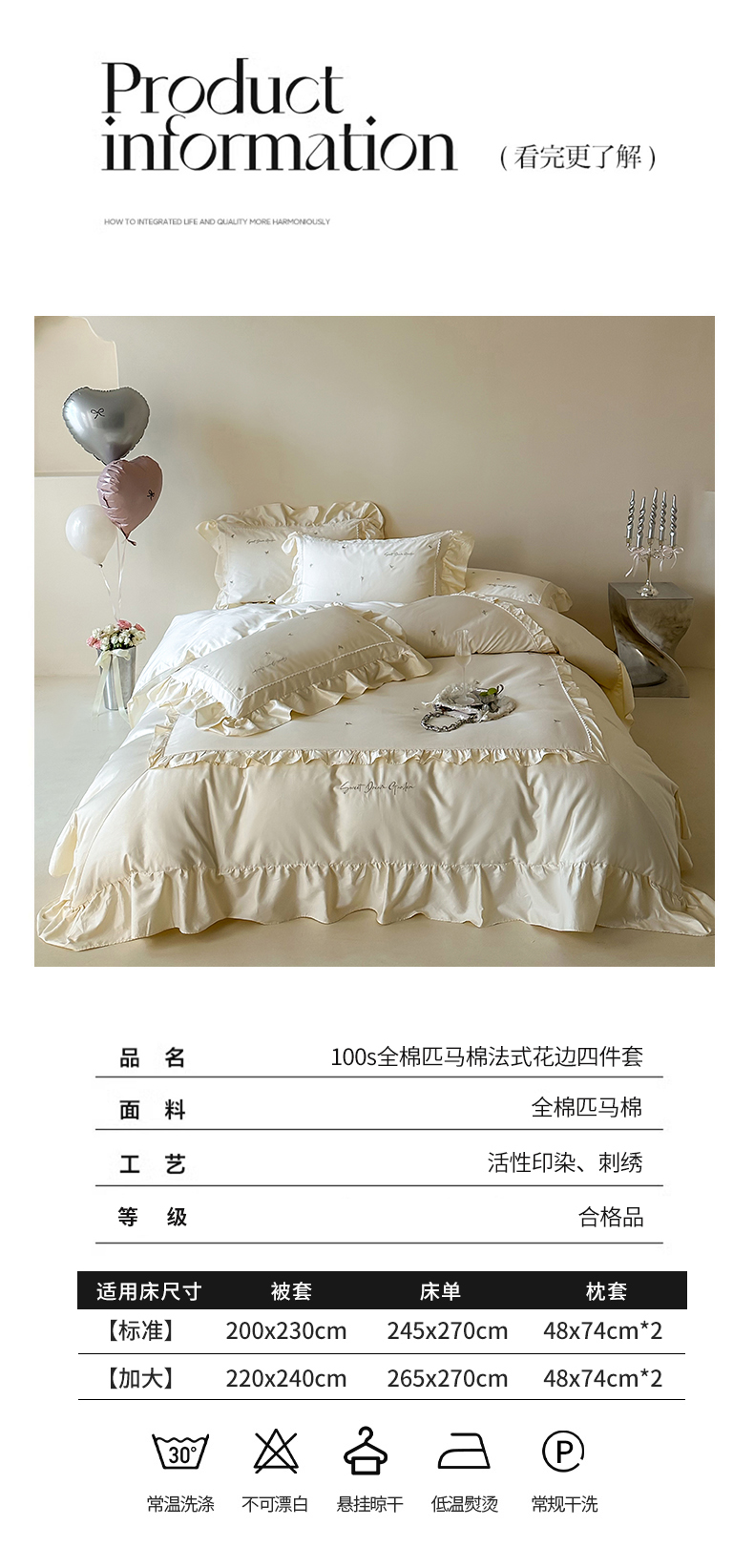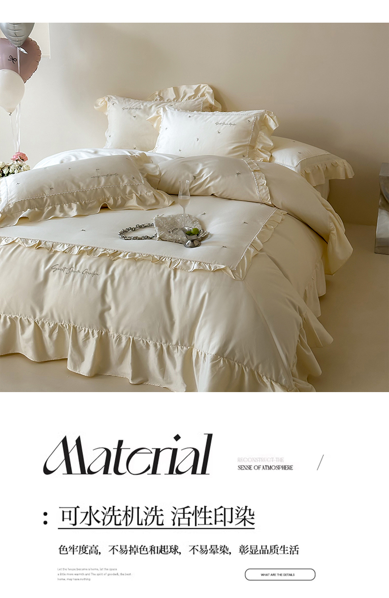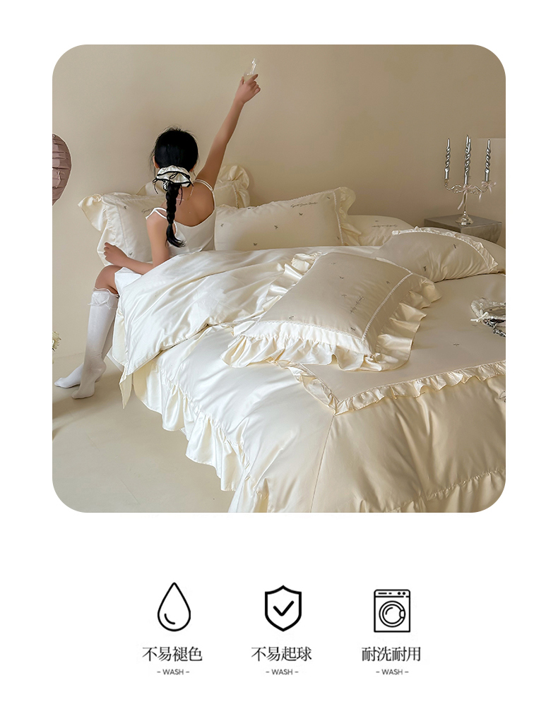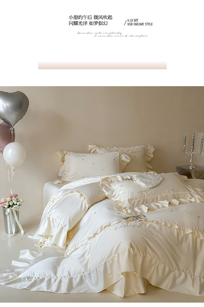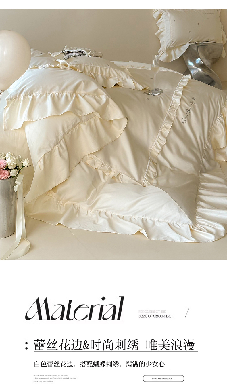 商品名称:红番天家居馆 2025新款全棉纯棉贡缎长绒棉法式刺绣花边四件套-蝶梦 蝶梦-奶油芝芝