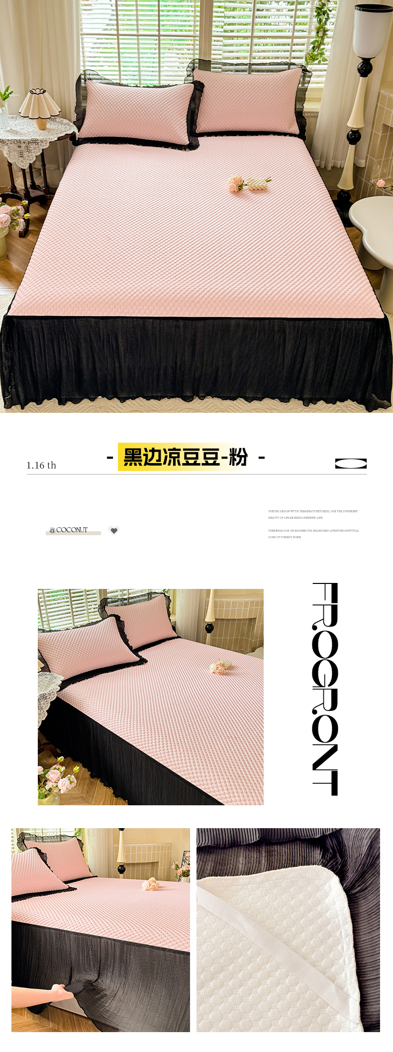 商品名称:逸尚阁 2025新款凉豆豆床裙凉席三件套 黑边凉豆豆-粉