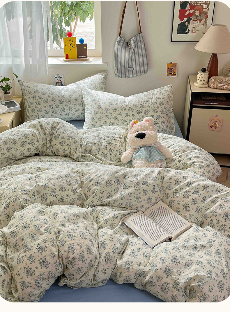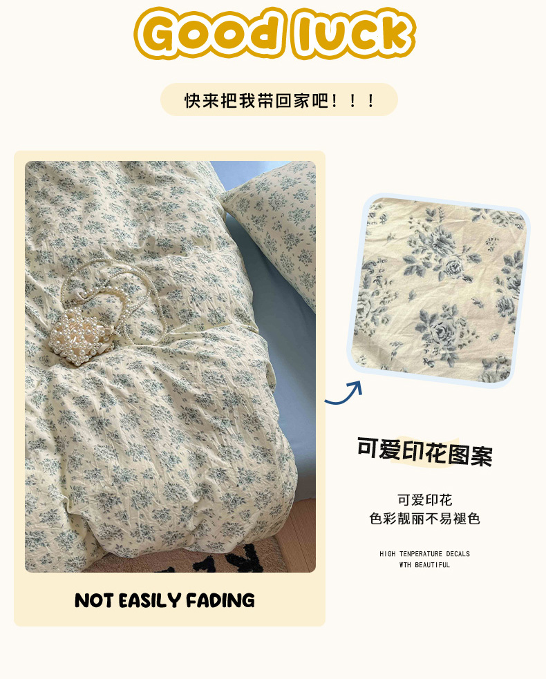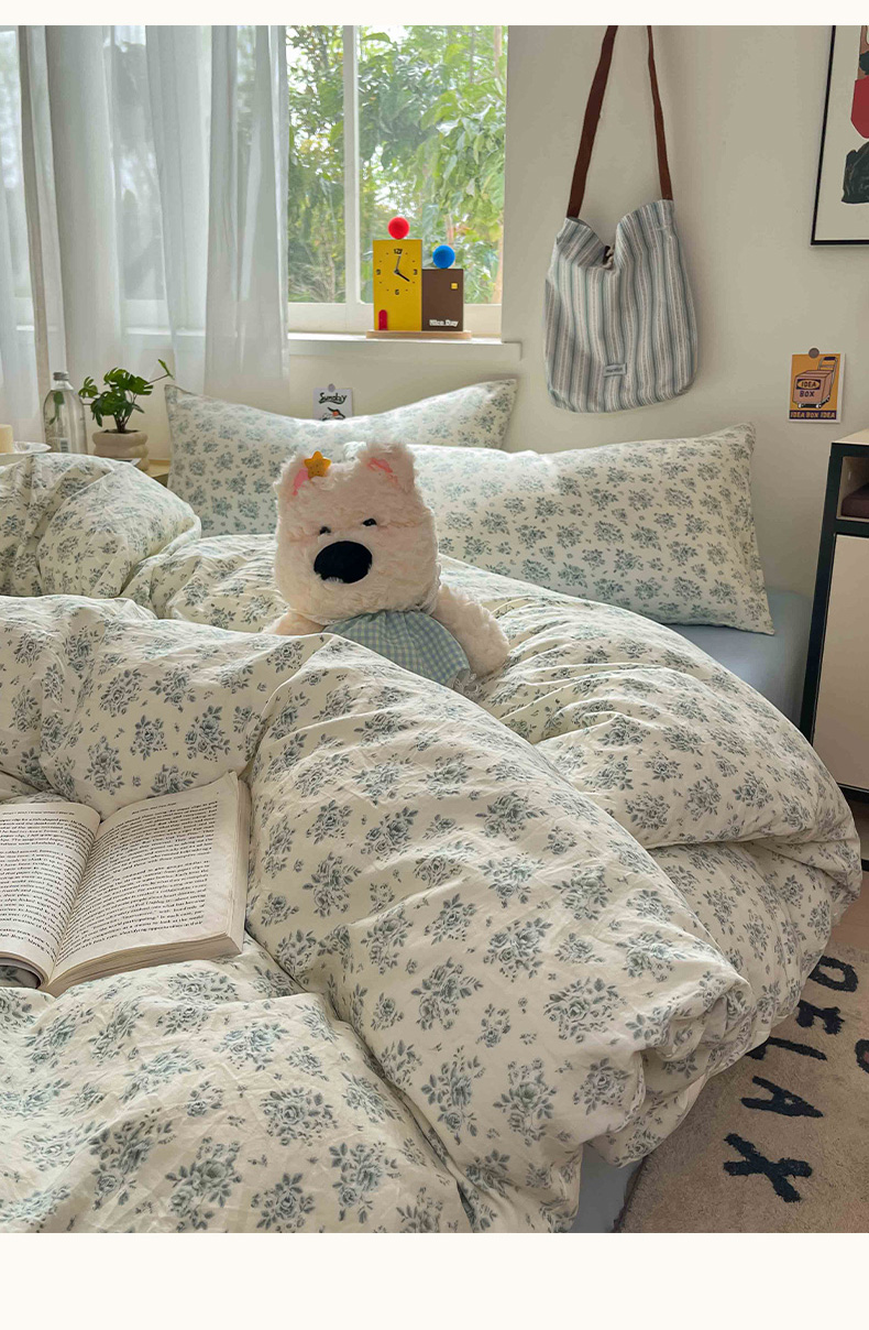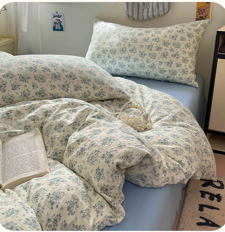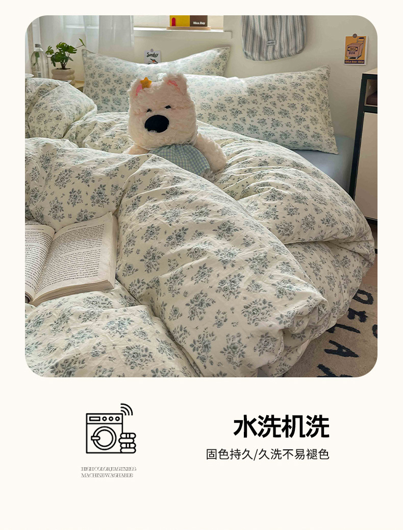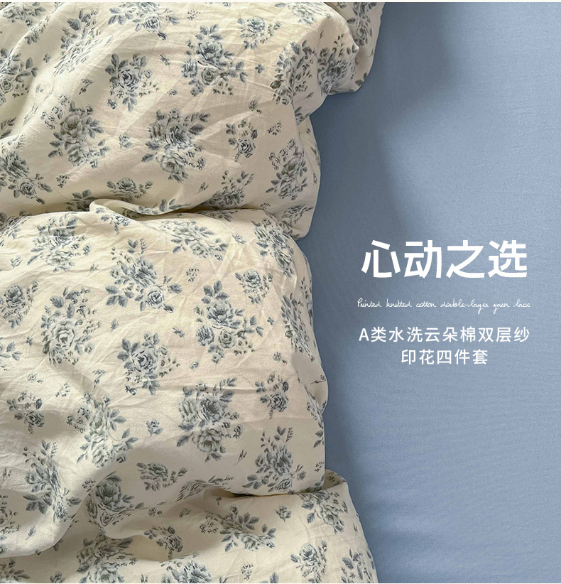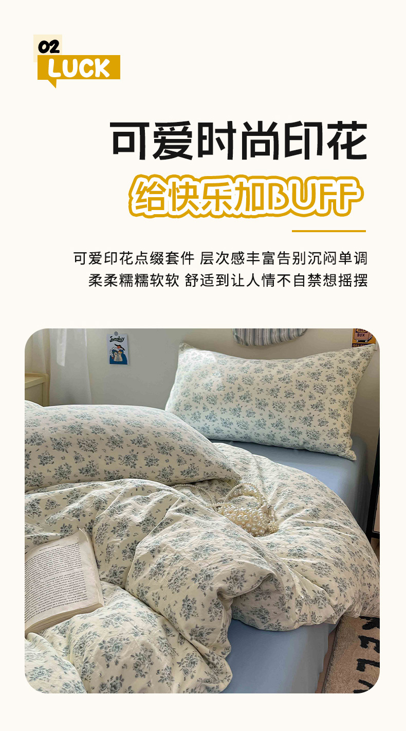 商品名称:罗亿家纺 2025新款软绵绵的双拼印花小清新水洗云朵棉四件套(含买家秀场景二) 春日与玫瑰