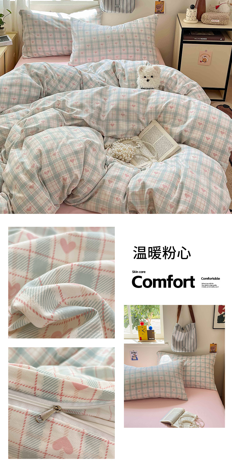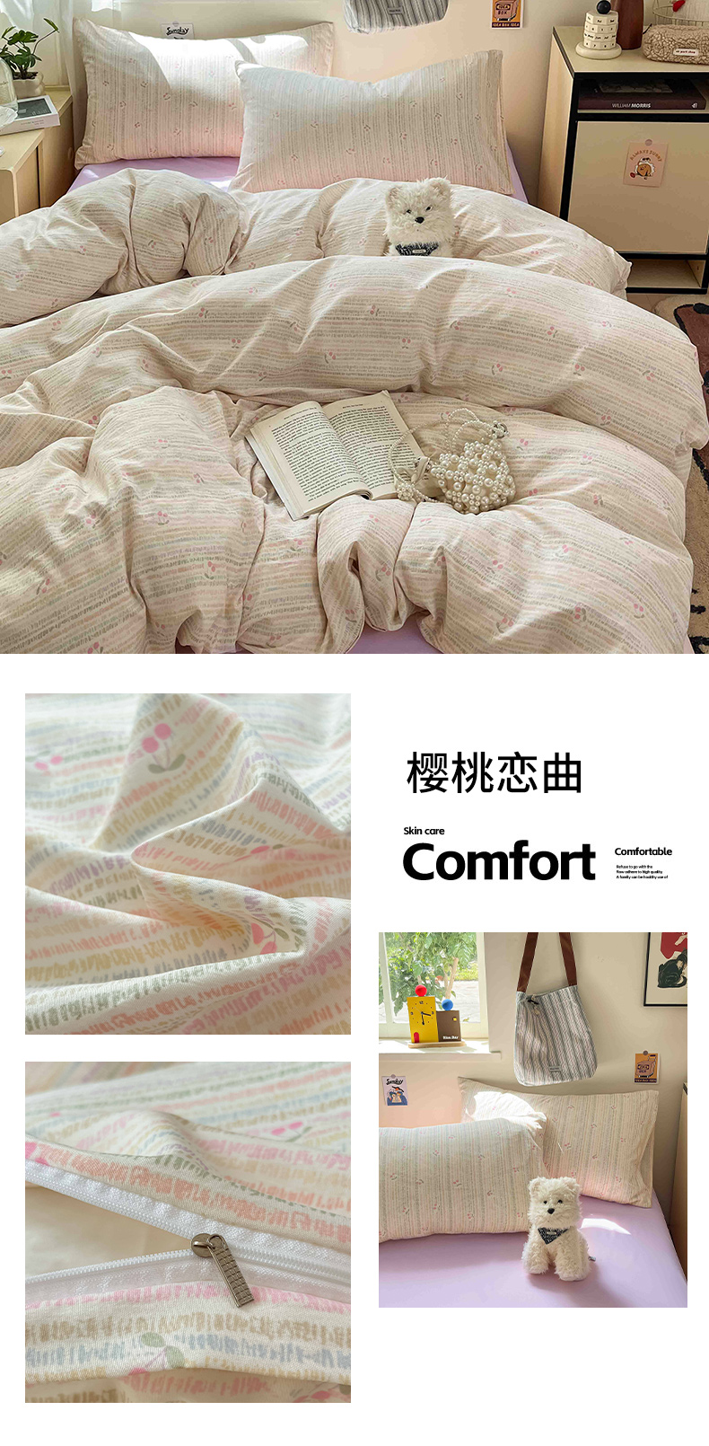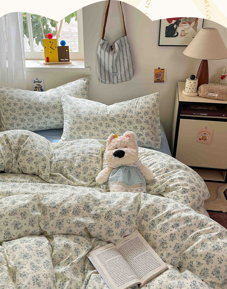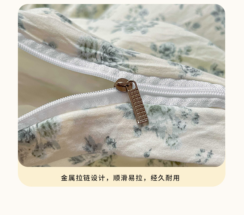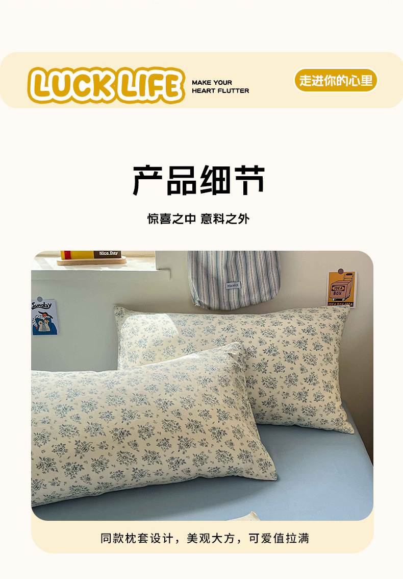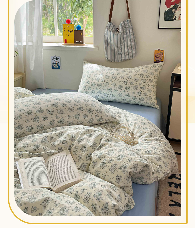 商品名称:罗亿家纺 2025新款软绵绵的双拼印花小清新水洗云朵棉四件套(含买家秀场景二) 春日与玫瑰