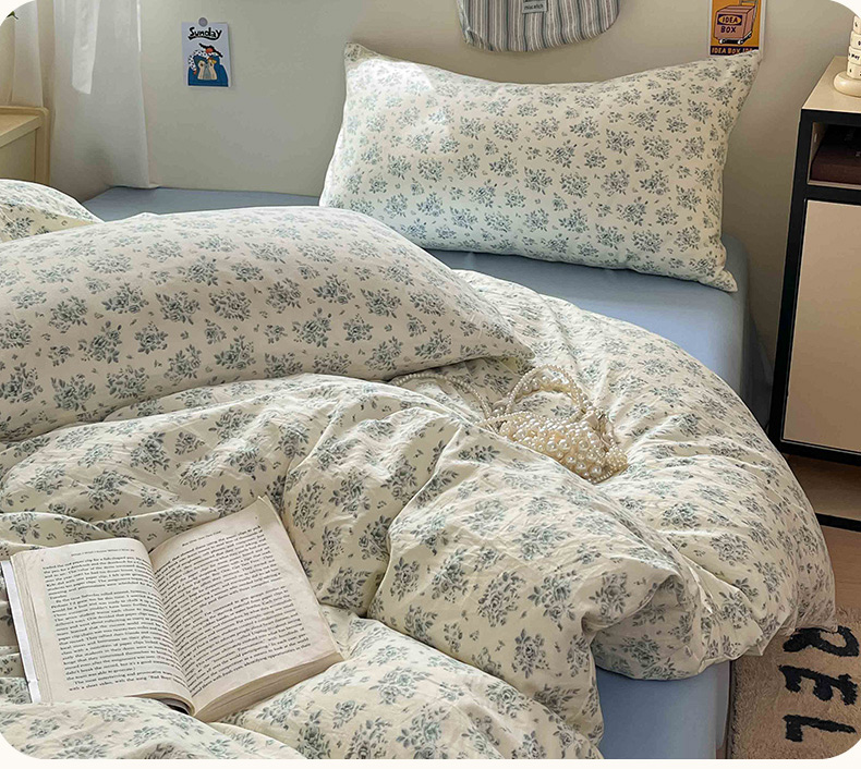 罗亿家纺 2025新款软绵绵的双拼印花小清新水洗云朵棉四件套(含买家秀场景二) 春日与玫瑰