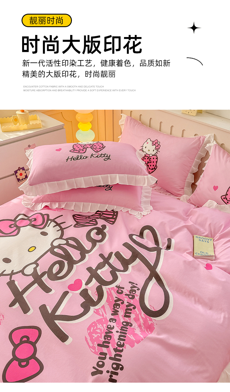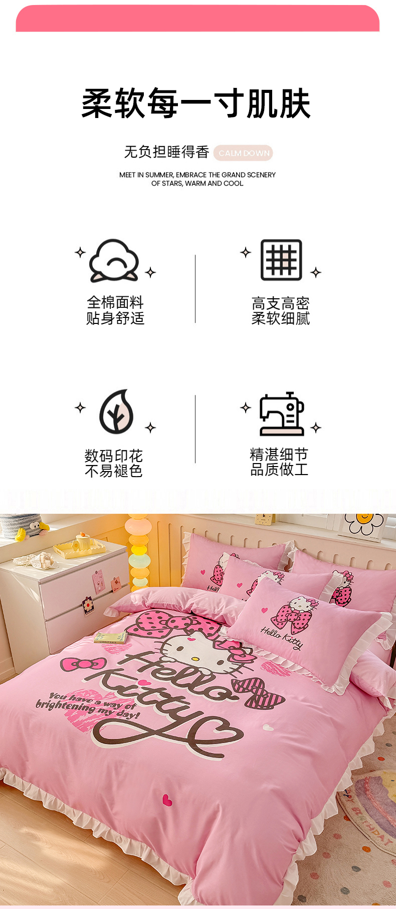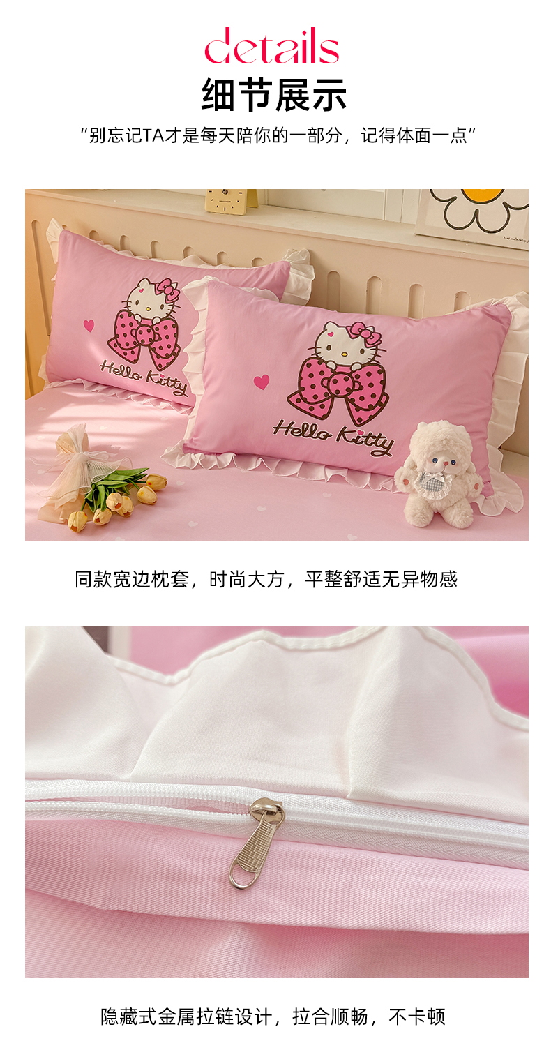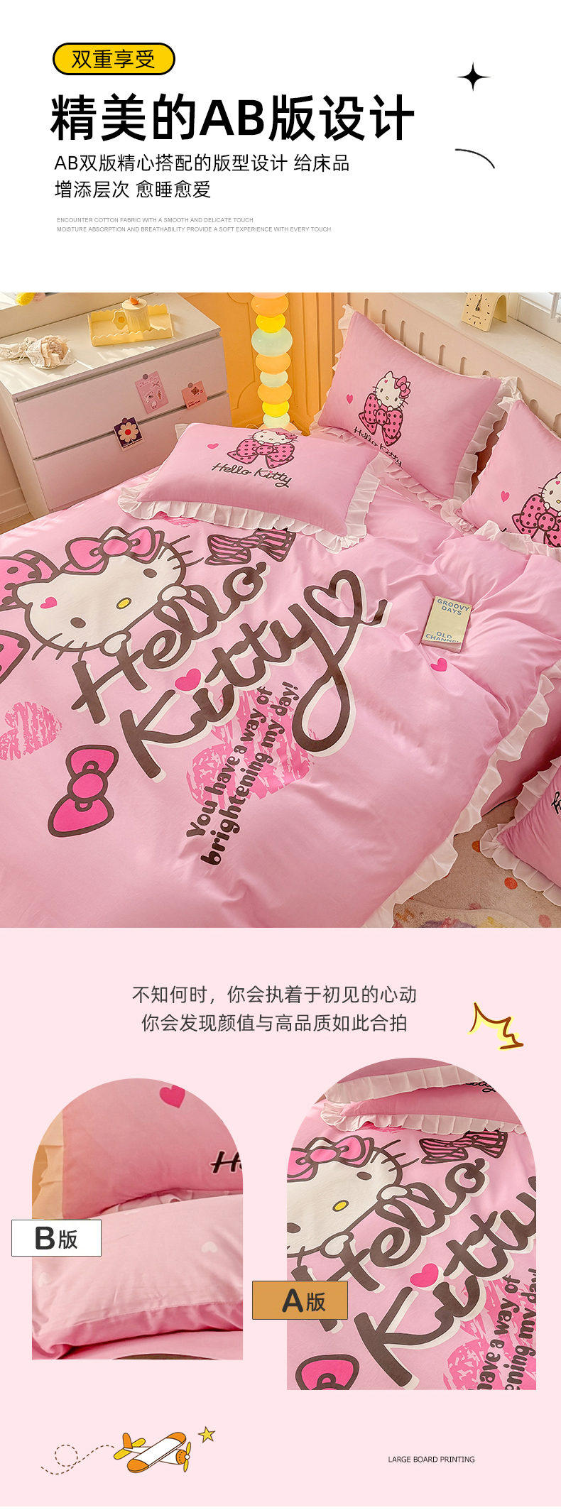 当前位置: 91家纺网 > 商品网购 > 床品套件 > 四件套 > 全棉普通四件套 > 玉元坊 2025新款三丽鸥白花边被套数码印花大版全棉纯棉卡通三四件套 花边款-凯蒂宝贝