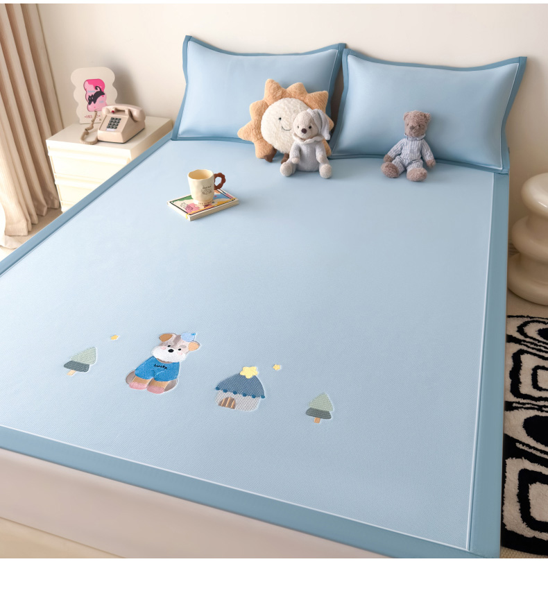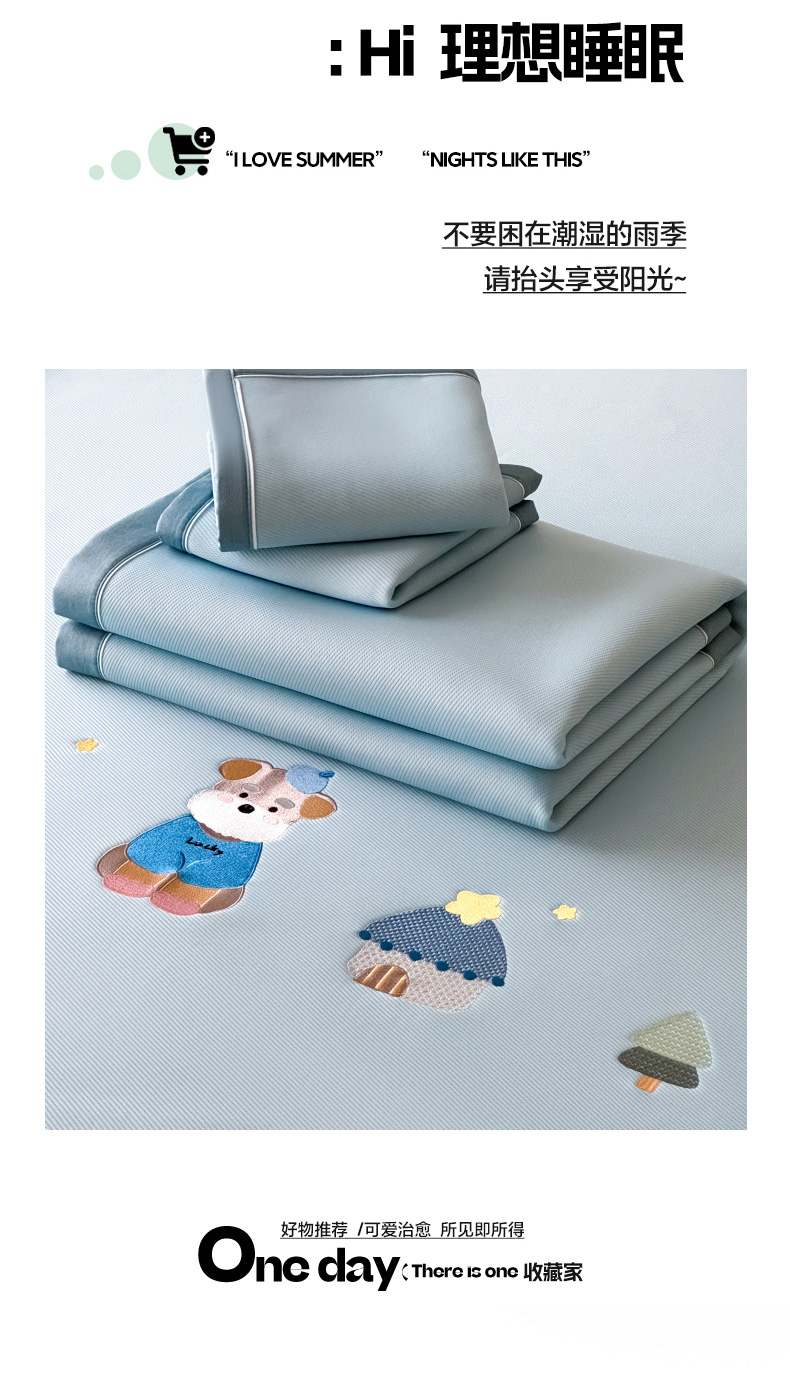 九花鹿2024新款A类大版碳光冰丝凉席床笠款三件套四件套,大版床笠款-熊宝贝