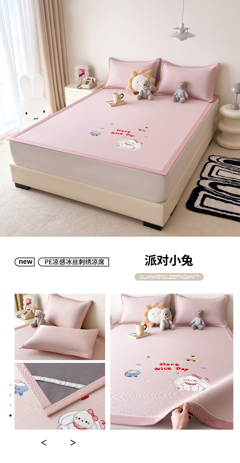 九花鹿2024新款A类大版碳光冰丝凉席床笠款三件套四件套,大版床笠款-萌萌兔