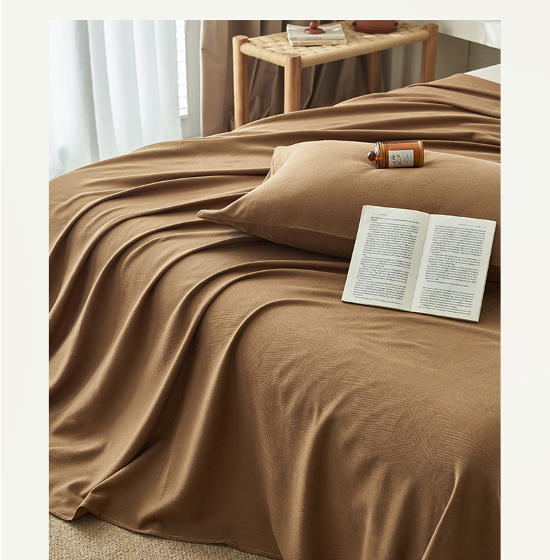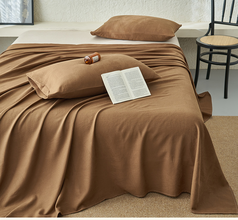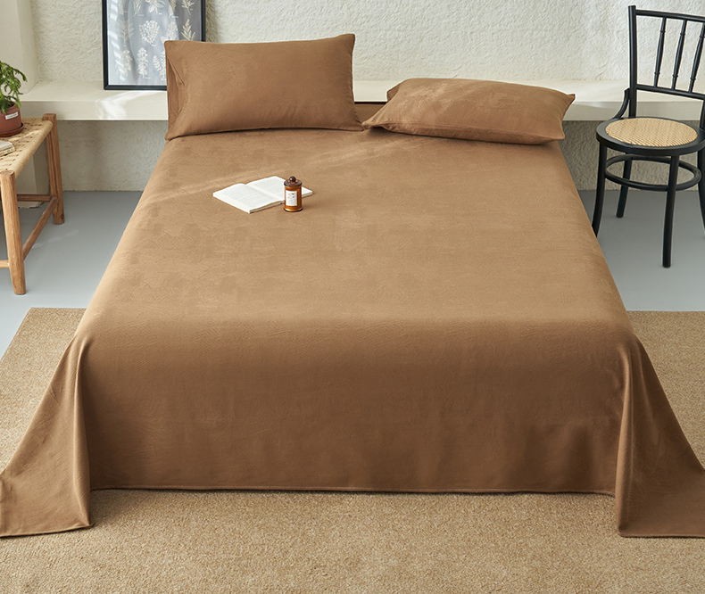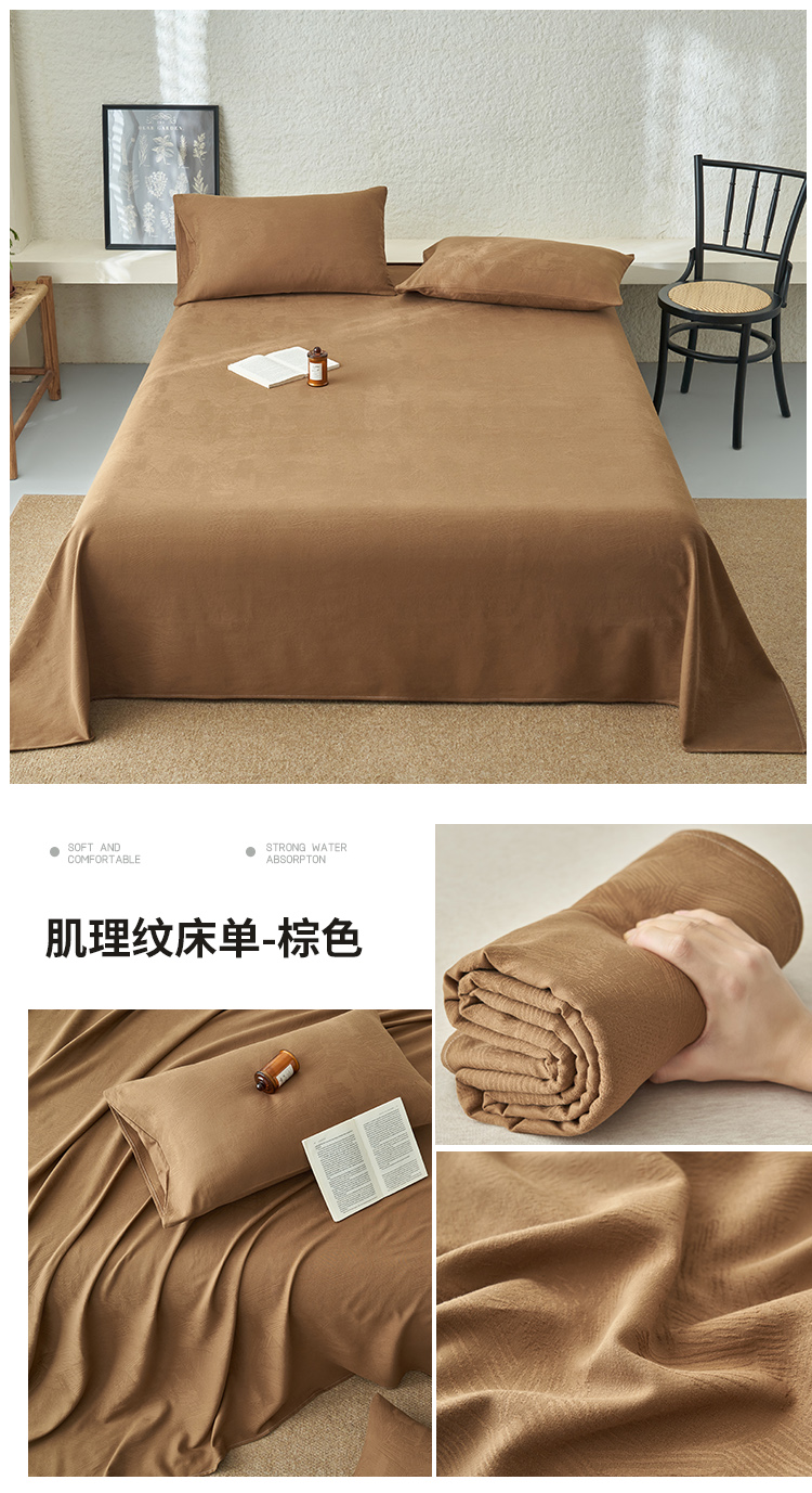 • 91家纺网 家纺一手货源 找家纺 早晨家纺 2025新款肌理纹纯棉提花床单 肌理纹床单-棕色