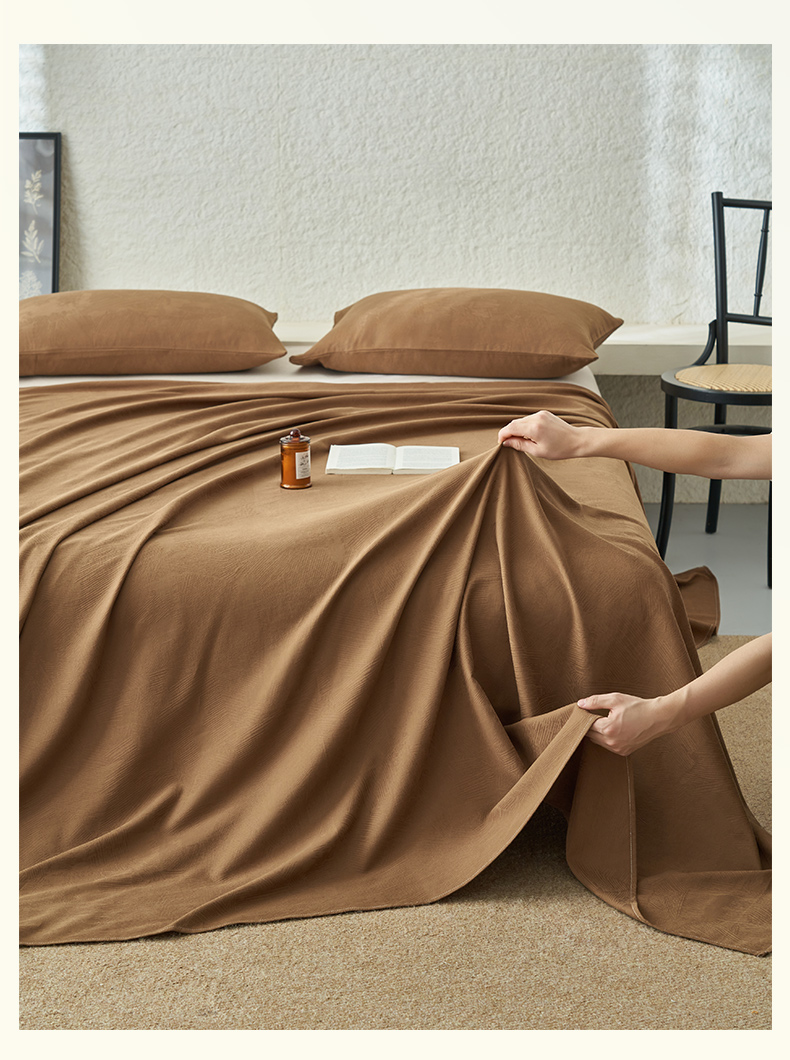 早晨家纺 2025新款肌理纹纯棉提花床单 肌理纹床单-棕色
