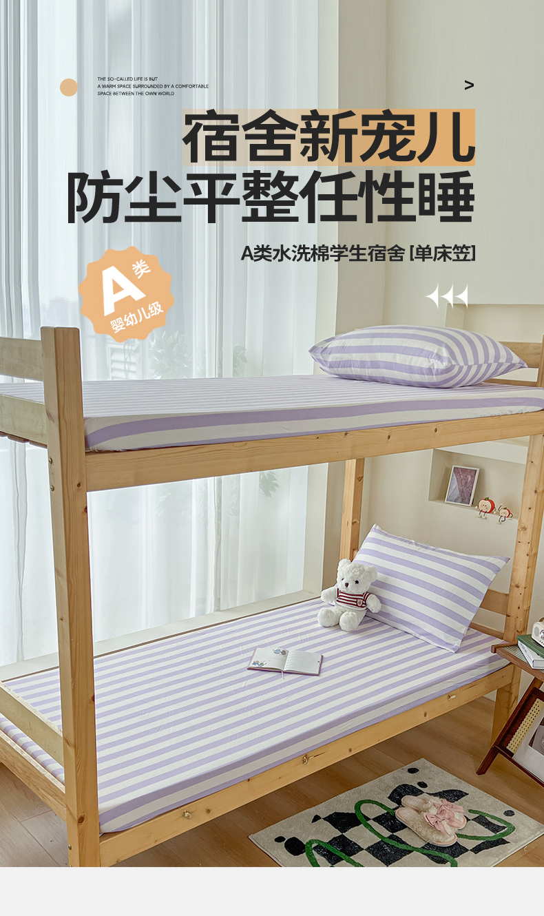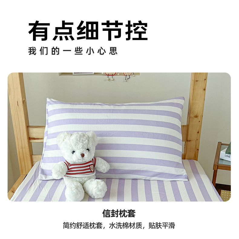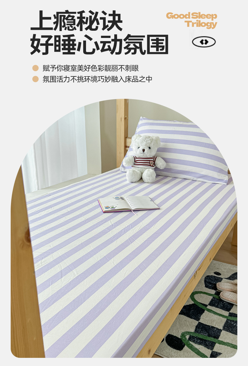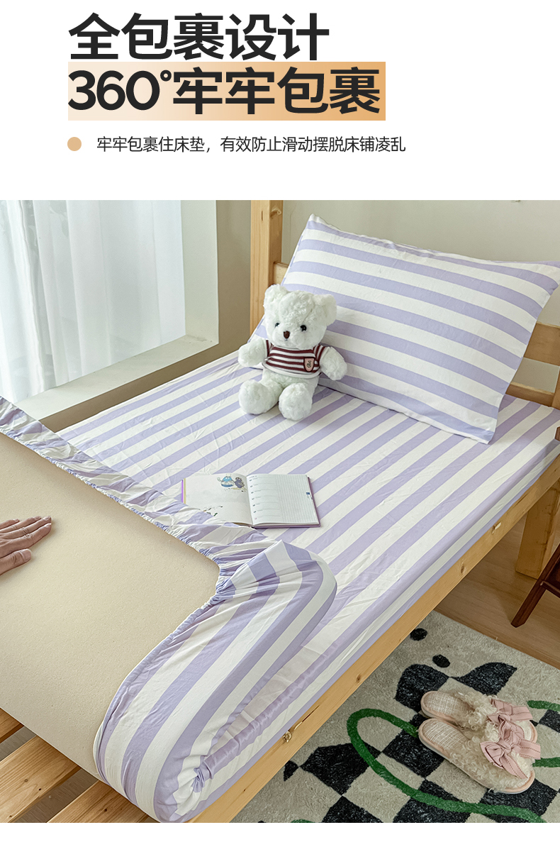 多品家纺 2025春夏新款超柔水洗棉学生宿舍床笠 丁香紫条
