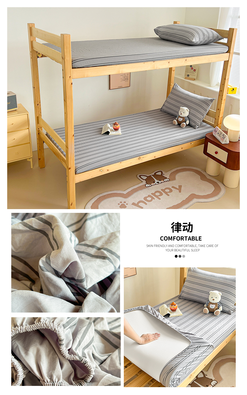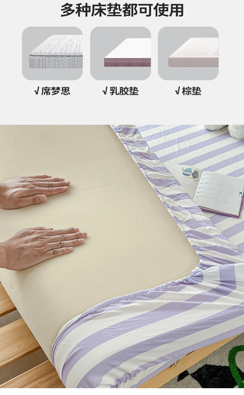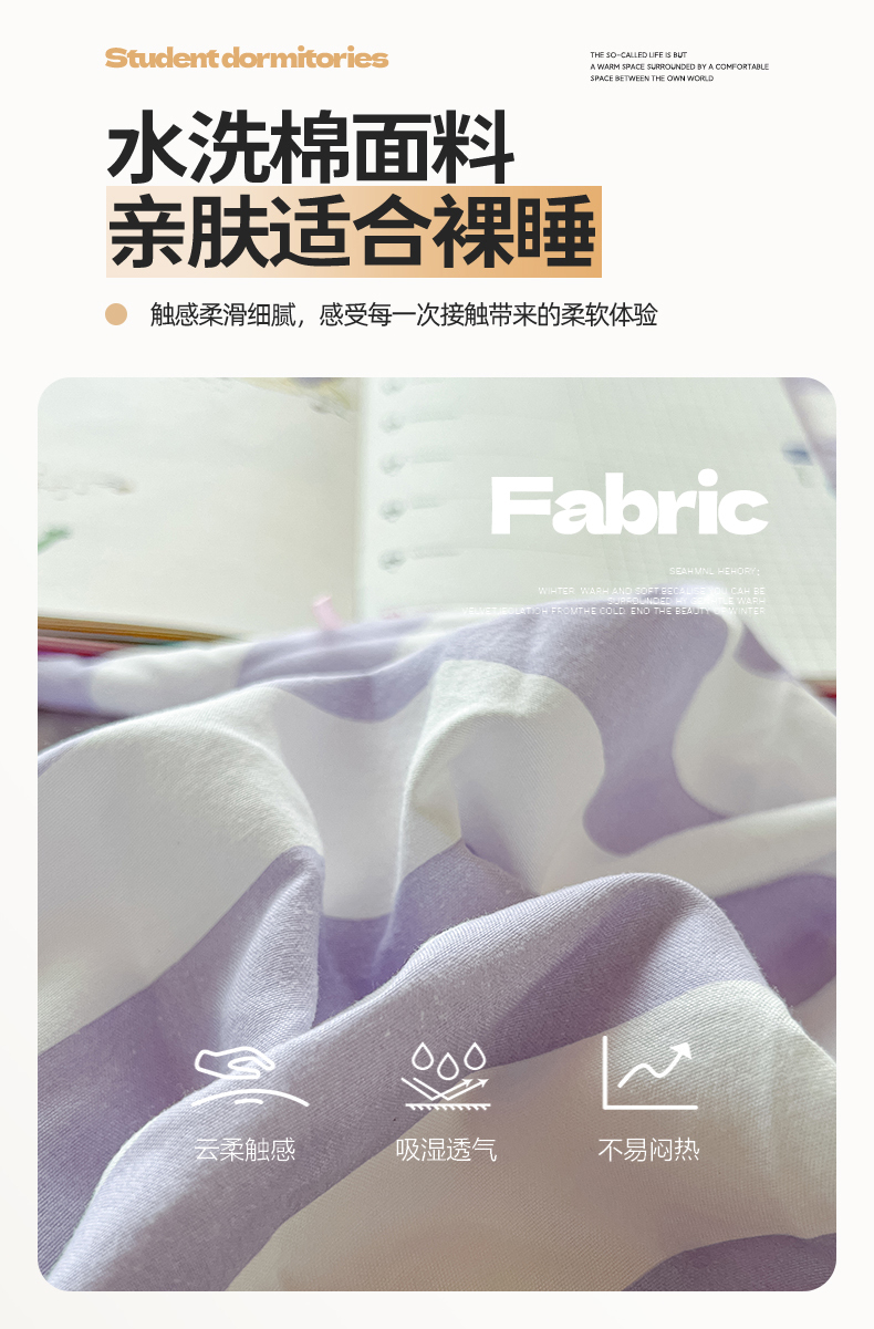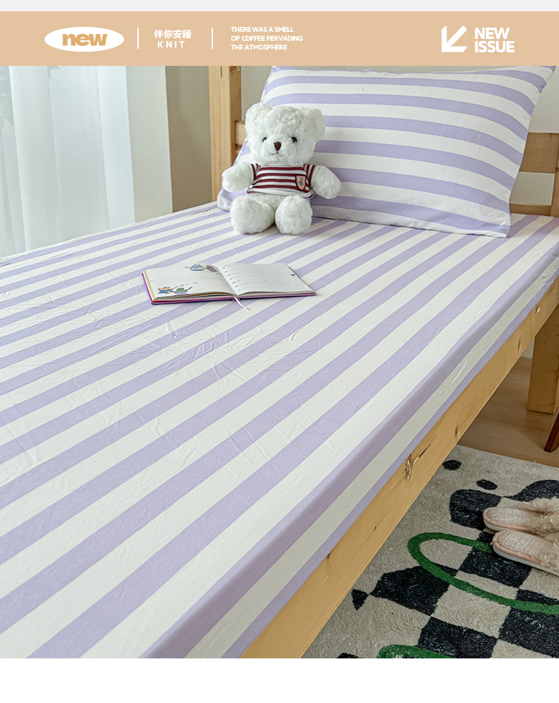 多品家纺 2025春夏新款超柔水洗棉学生宿舍床笠 丁香紫条