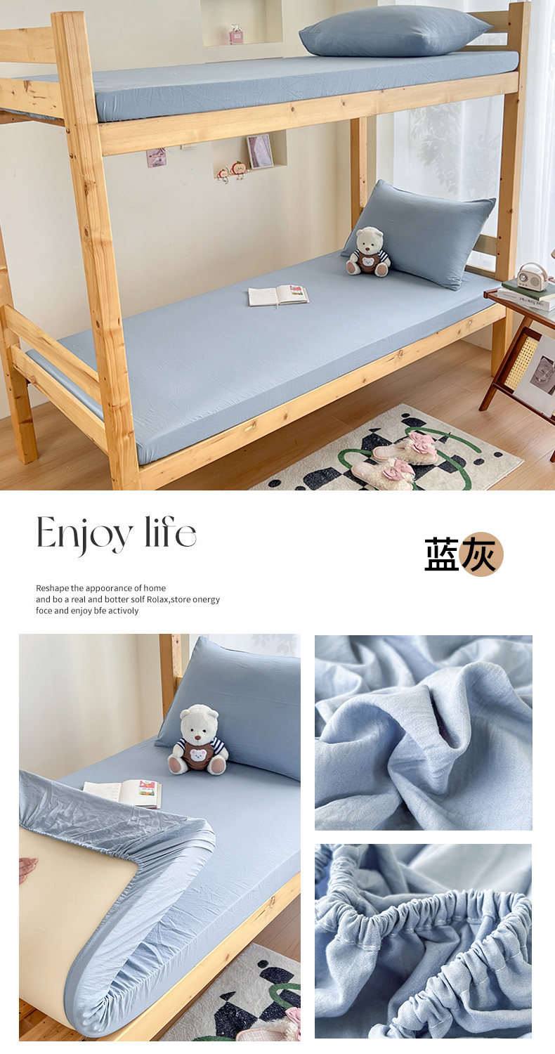 • 91家纺网 家纺一手货源 找家纺 多品家纺 2025春夏新款超柔水洗棉学生宿舍床笠 丁香紫条