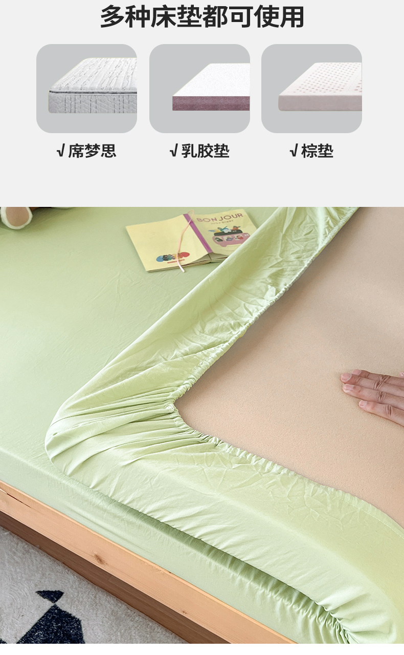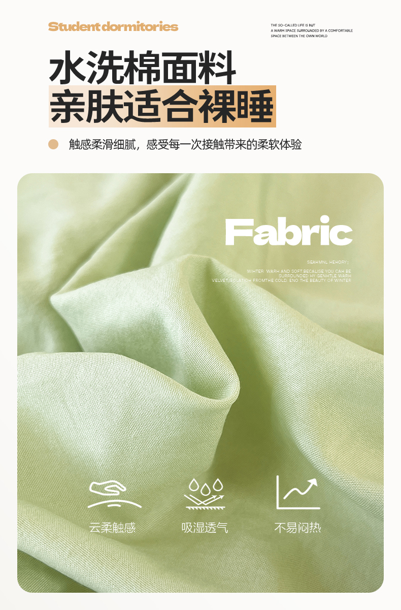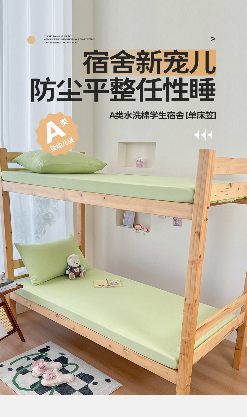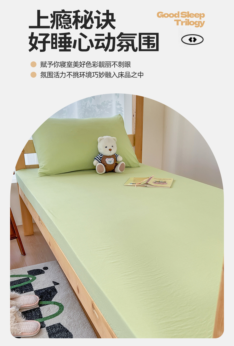 • 91家纺网 家纺一手货源 找家纺 多品家纺 2025春夏新款超柔水洗棉学生宿舍床笠 奶绿