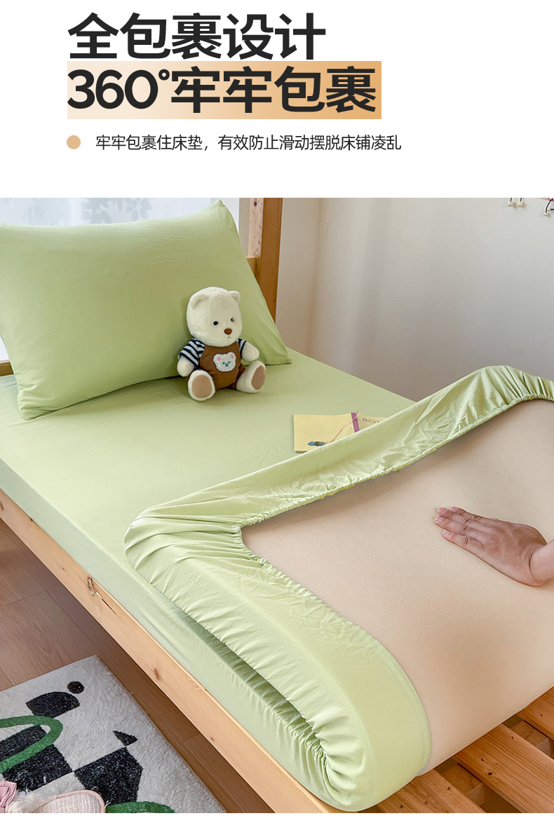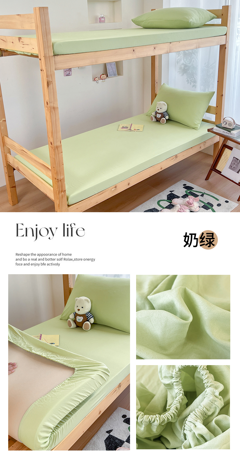 多品家纺 2025春夏新款超柔水洗棉学生宿舍床笠 奶绿