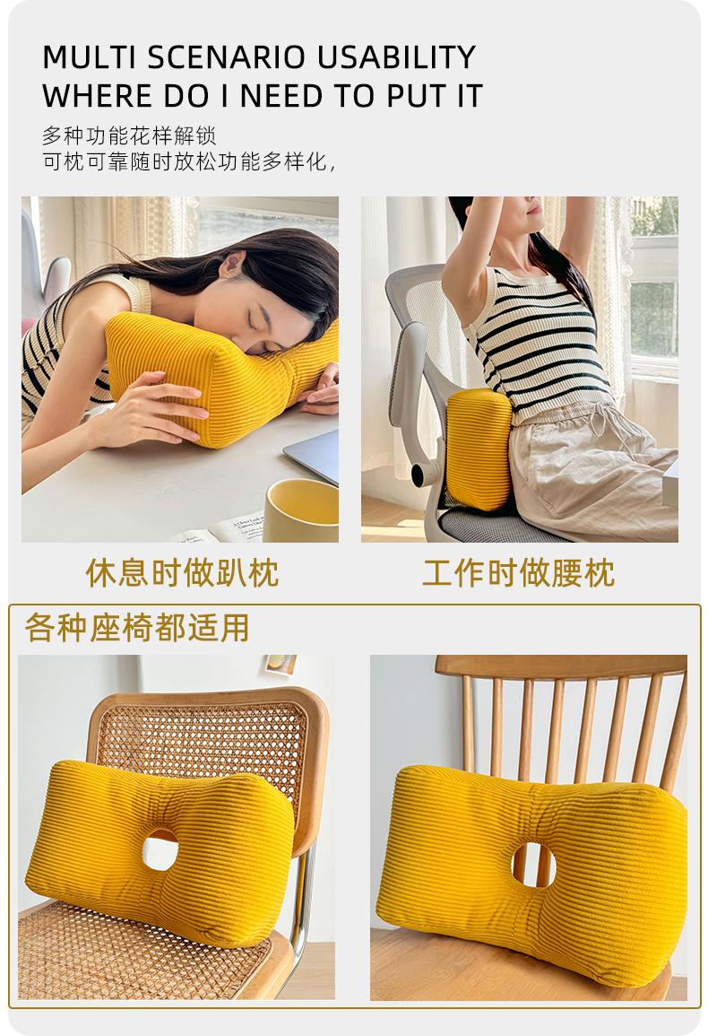 当前位置: 91家纺网 > 商品网购 > 居家日用 > 靠垫/抱枕 > 囍莱家纺 2025新款灯芯绒靠枕腰枕办公室趴睡枕电脑椅子护腰靠垫 镂空款-米色