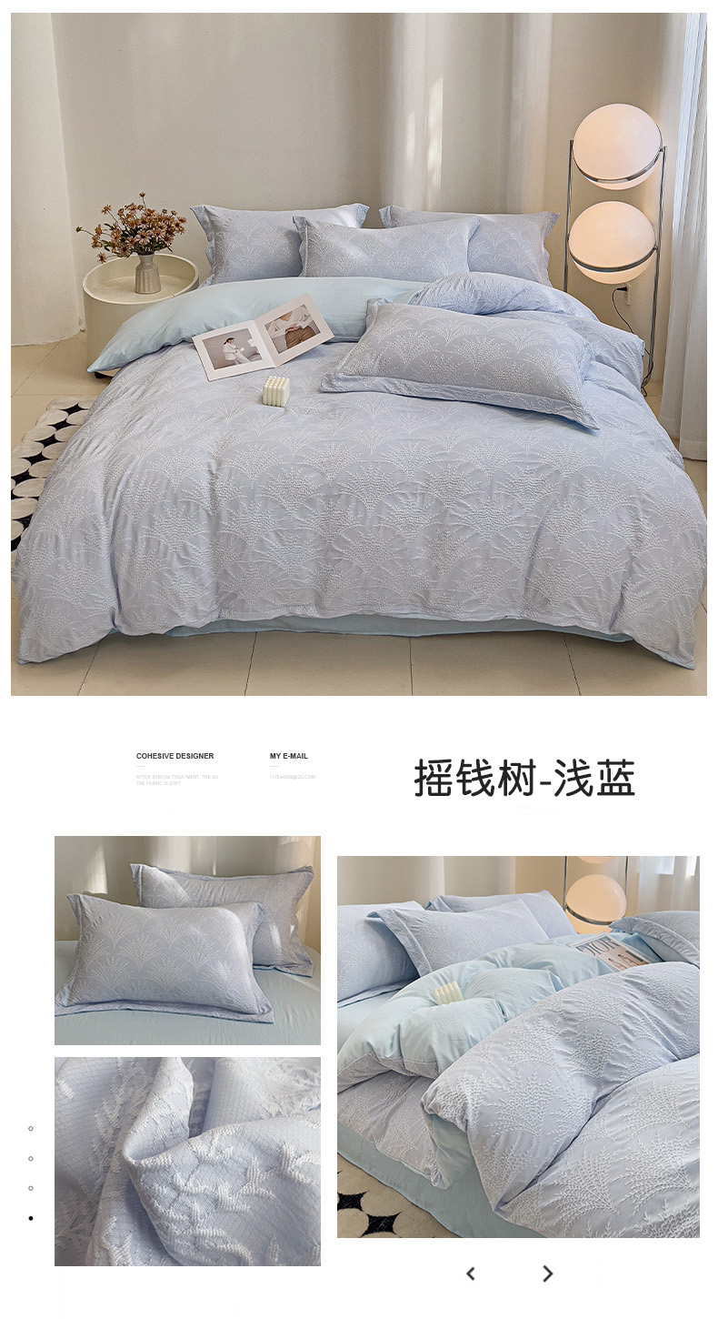 当前位置: 91家纺网 > 商品网购 > 床品套件 > 四件套 > 双层纱四件套 > 卡普家居 2025新款A类轻奢双层纱提花四件套摇钱树系列 摇钱树(浅蓝)