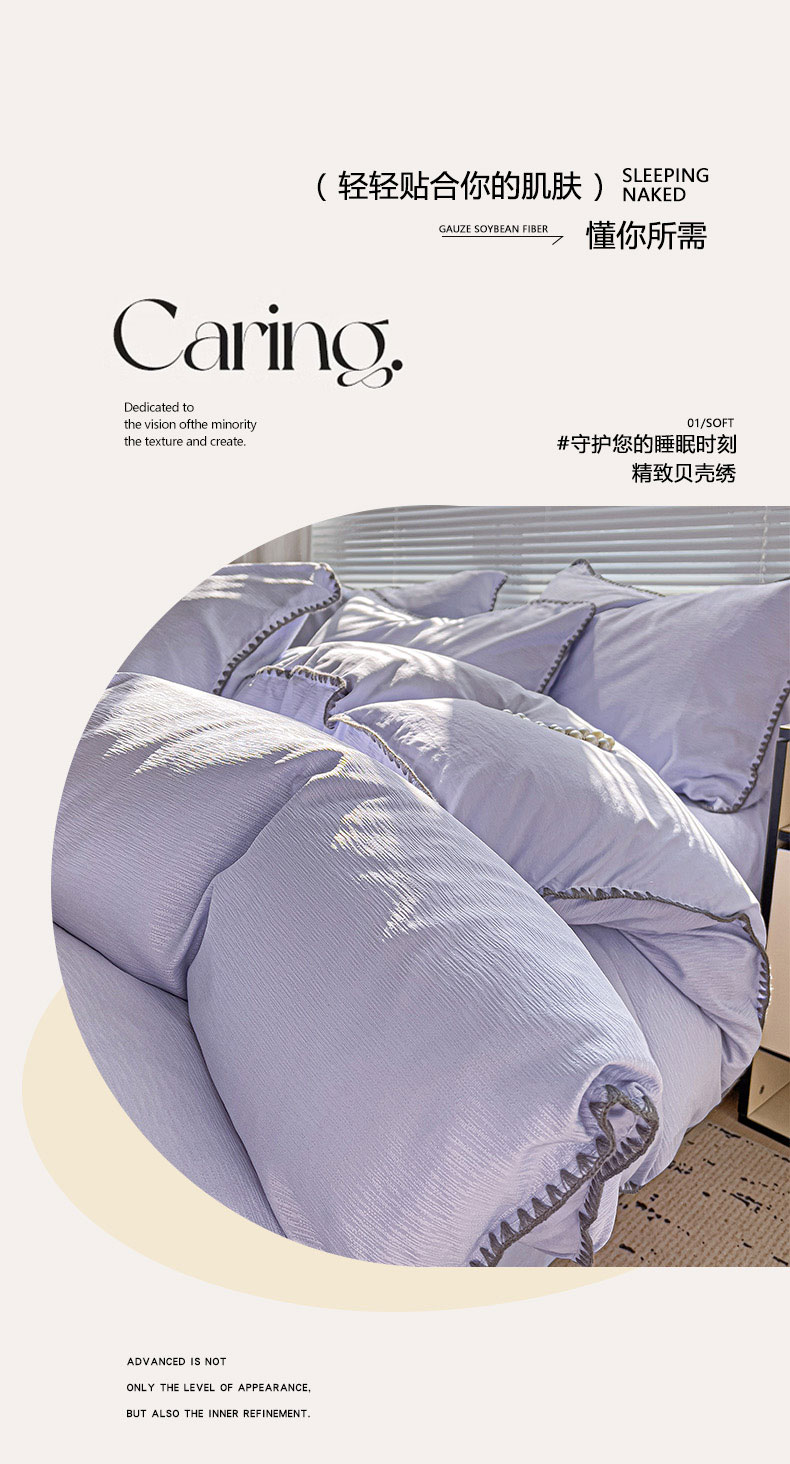 当前位置: 91家纺网 > 商品网购 > 床品套件 > 四件套 > 提花四件套 > 卡普家居 2025新款A类轻奢贝壳绣丝柔缎提花四件套 丝柔缎-浅紫