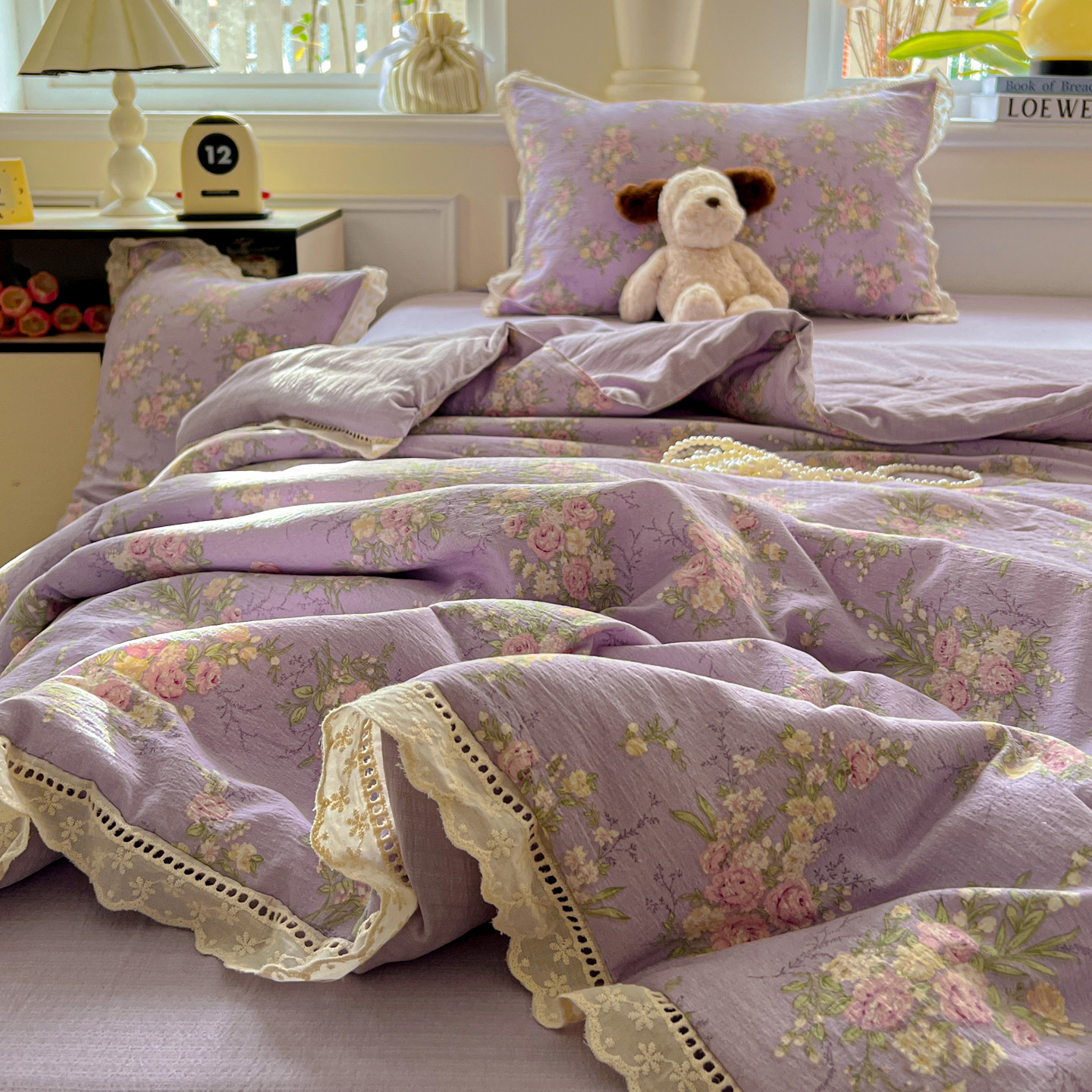 繁花家居 2025新款云感棉镂空花边夏被四件套 组合