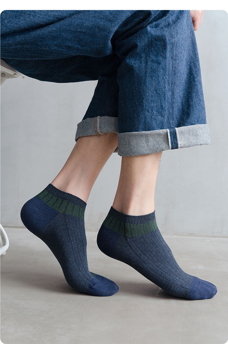 良品汇馆 2025【男士拼色暗纹短袜】日式无印男士拼色暗纹短袜良品百搭休闲防臭7A抑菌吸汗袜子船袜夏 男拼色暗纹短袜-藏青