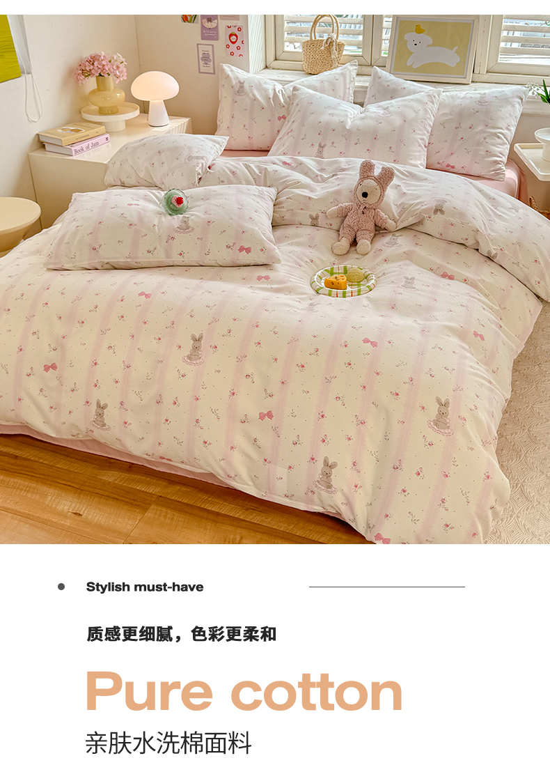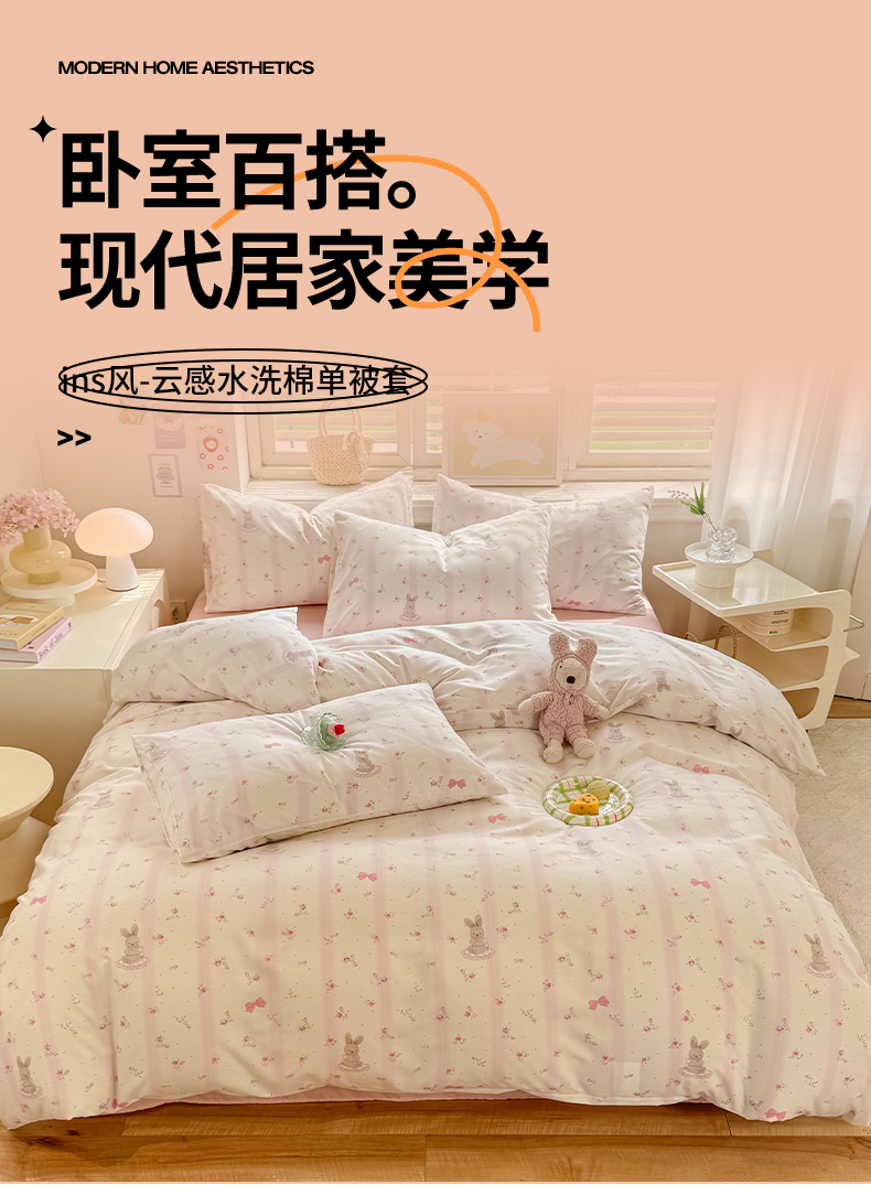 • 91家纺网 家纺一手货源 找家纺 多品家纺 2025春夏新款超柔云感水洗棉单被套 被套单件 小兔斑比