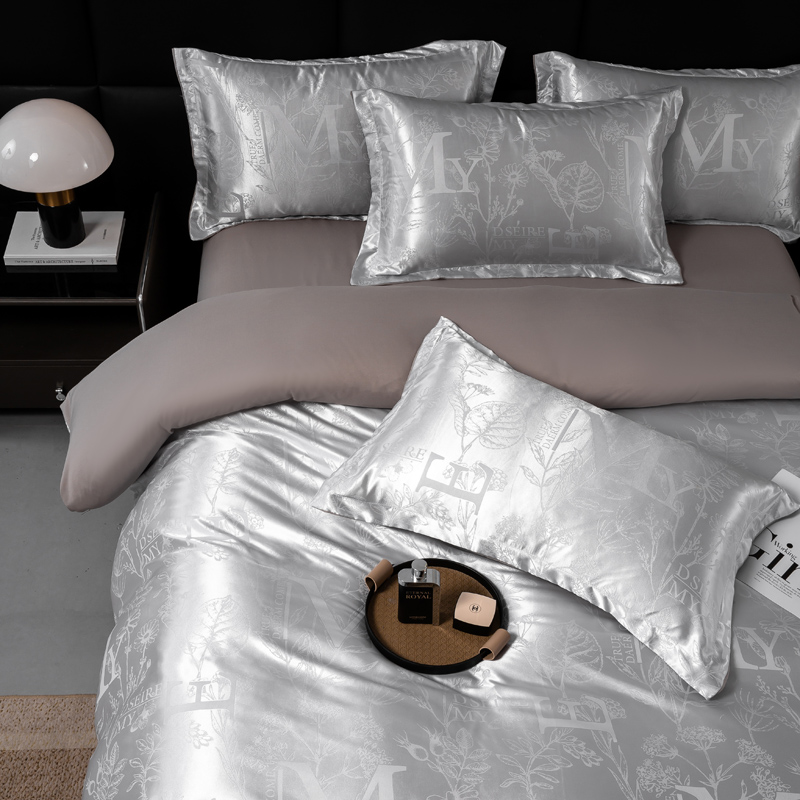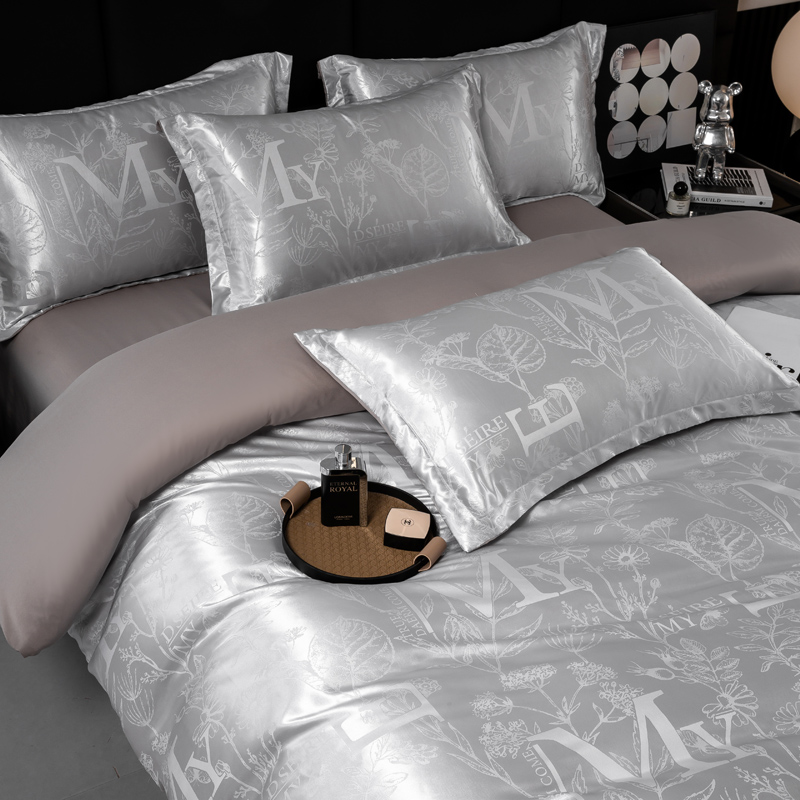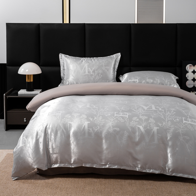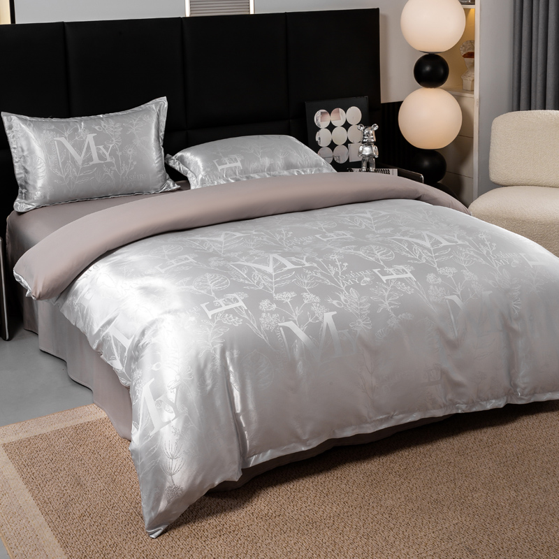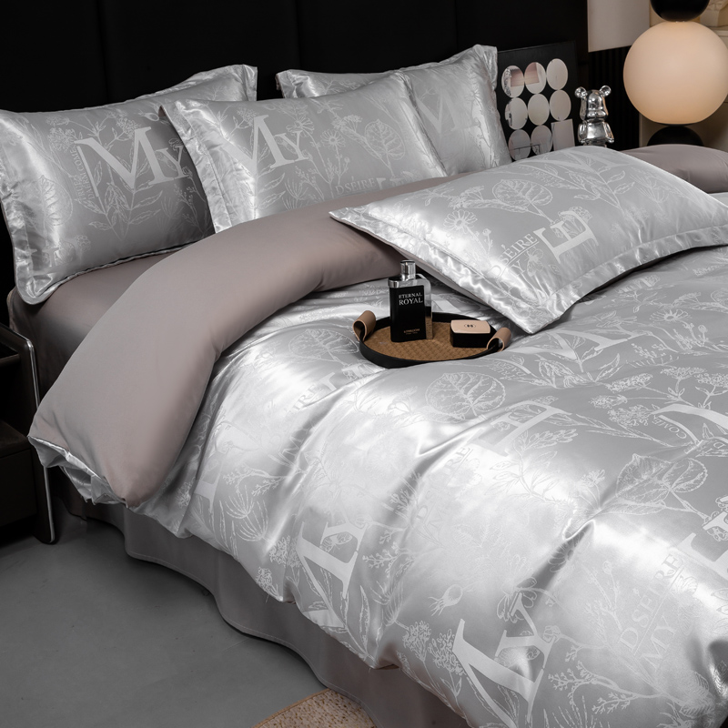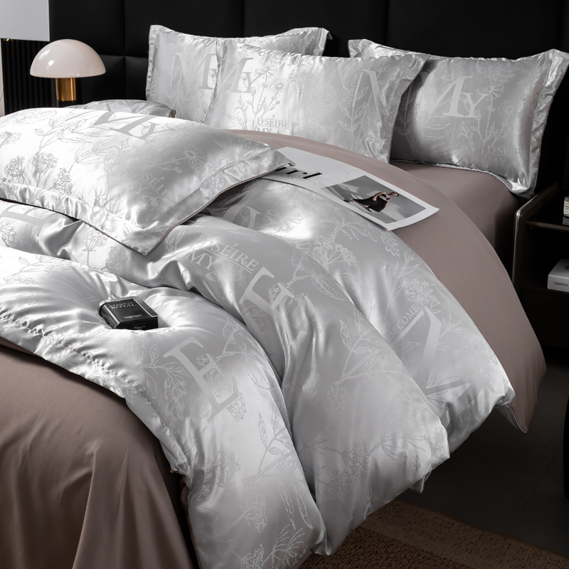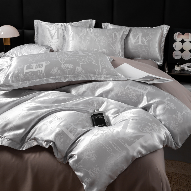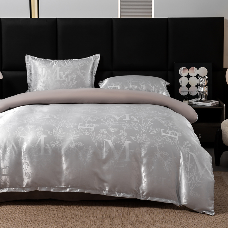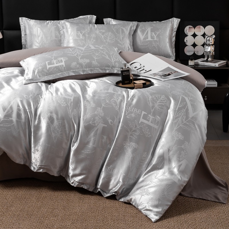 (总)莱欧纳家纺 2025新款提花夏被四件套,豆沙,灰色,香槟,紫色