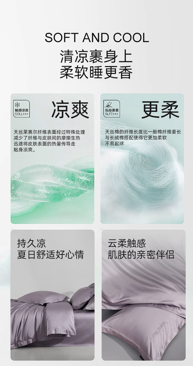 商品名称:轩和家居 2025新款LF80支超细旦天丝棉四件套 暮珀紫