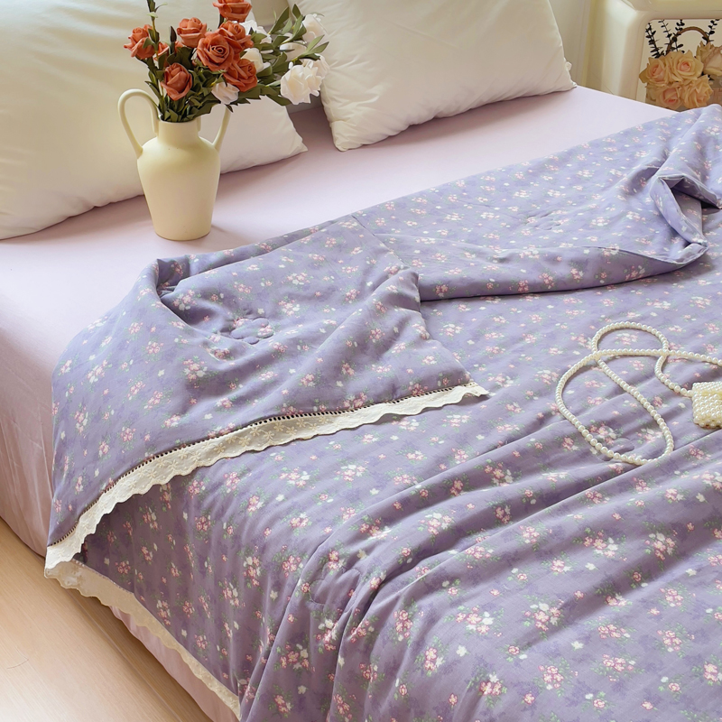 (总)集布 2025新款100%全棉双层纱花边款夏被夏凉被,初夏,赫拉,奶油小兔,苏黎世,紫草藤,梦华录,甜心,素影繁花蓝