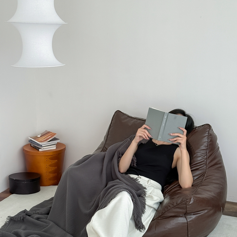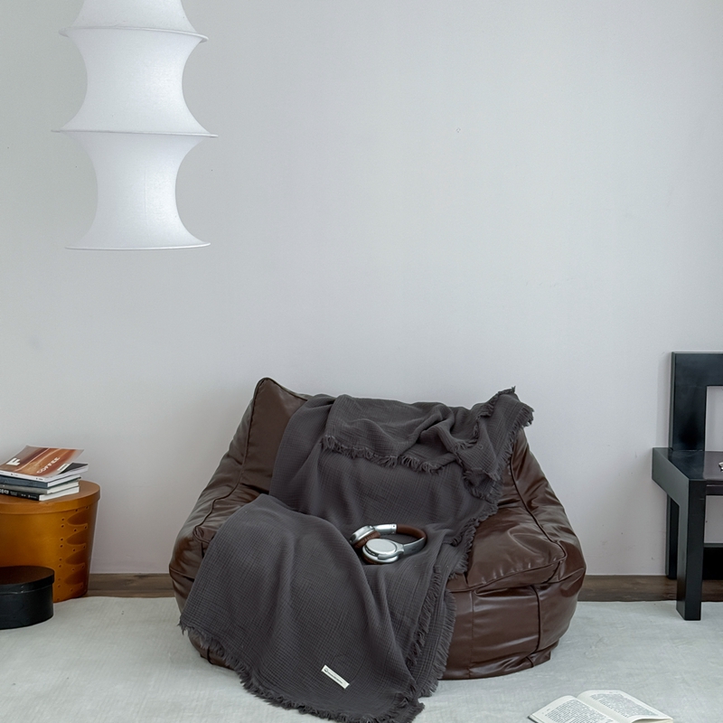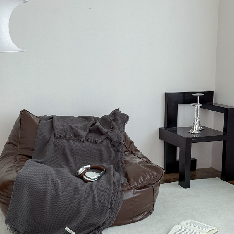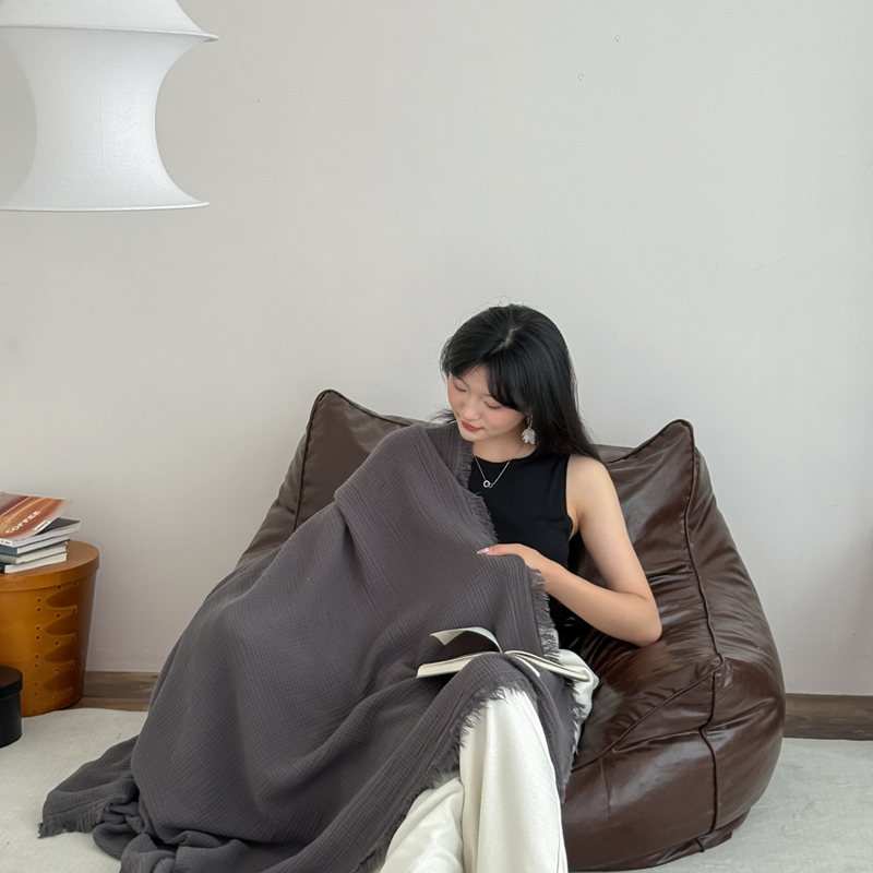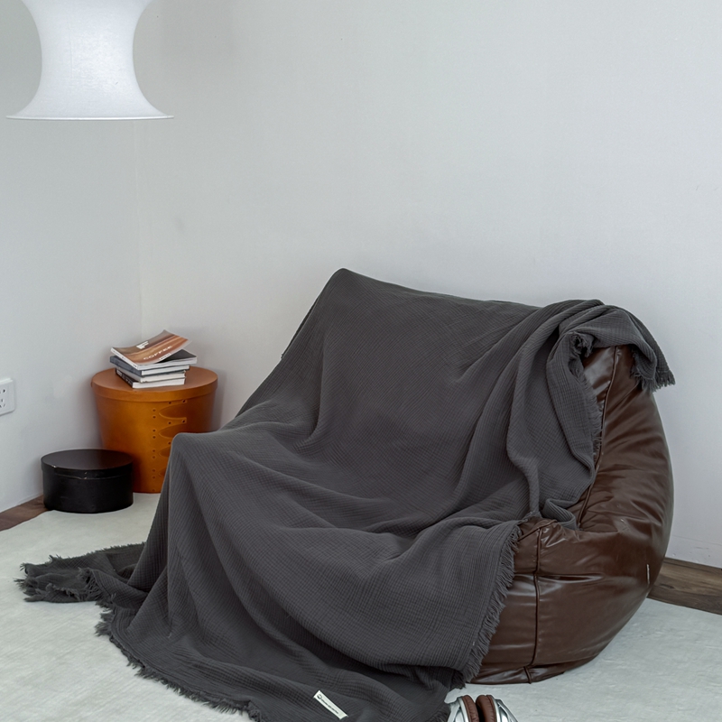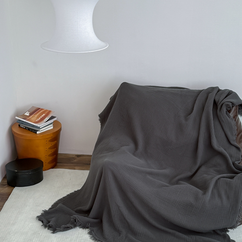 山舍家居 2025新款全棉四层纱流苏盖毯第三批沙发图 炭黑