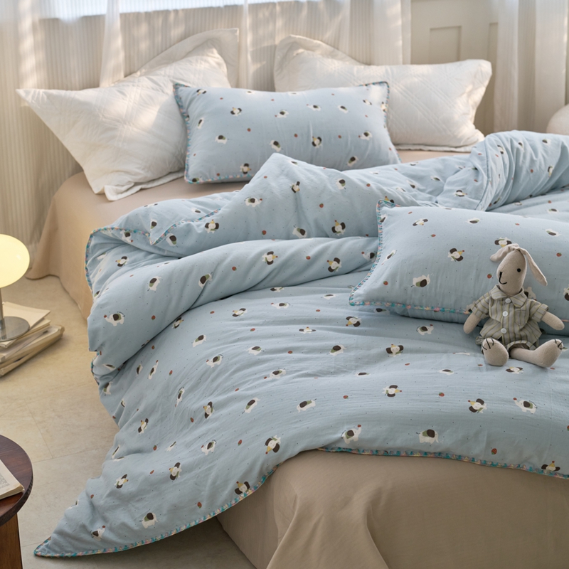 (总)洋铭区(原狠狠爱) 2026新款春季全棉彩边双层纱四件套,爱心宝莉,波斯小懒狗,繁花兔兔,格格小熊,海蓝小木马,红格小马,红枣小兔,花朵兔兔,焦糖小熊,兰花香,绿芽小马,萌宠小分队,奶茶蝴蝶结,奶糕熊熊,汽车派对,桃桃粉花,甜果小象,图图小狮子,幸运小可爱,熊猫嘟嘟,遇见粉花,月光宝宝