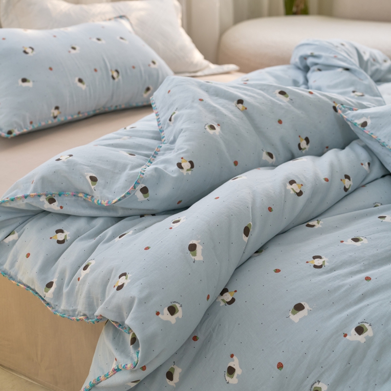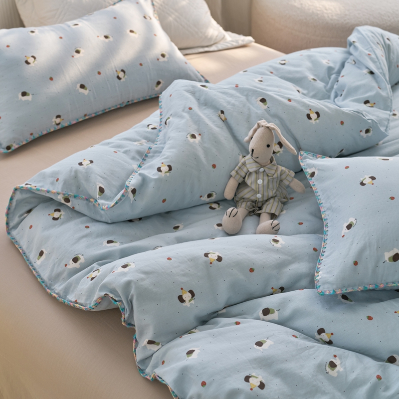 (总)洋铭区 2023新款全棉皱皱双层纱夏被,粉色郁金香,甜萝卜,旺旺熊,微笑,香甜草莓,小花仙,小鸭鸭