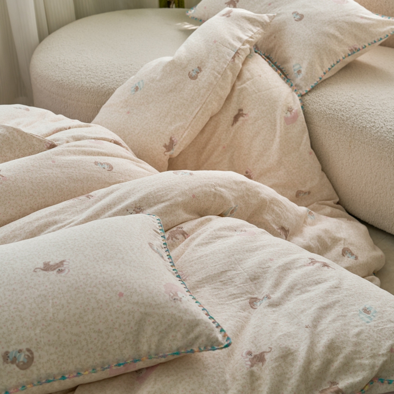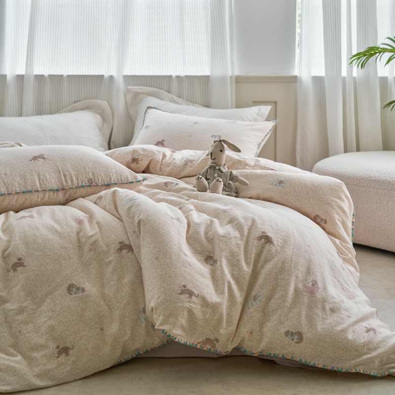 洋铭区(原狠狠爱) 2025新款全棉彩边双层四件套 小懒猫