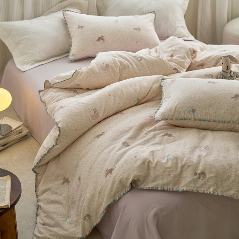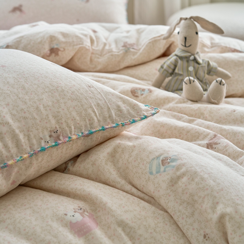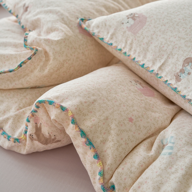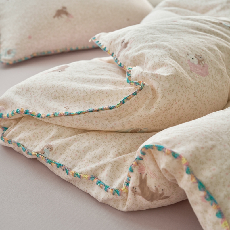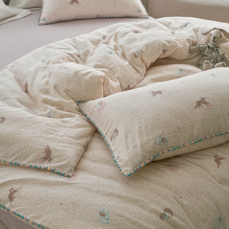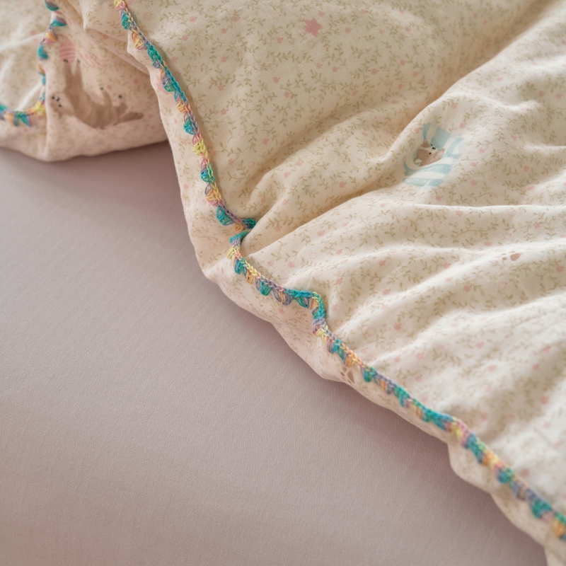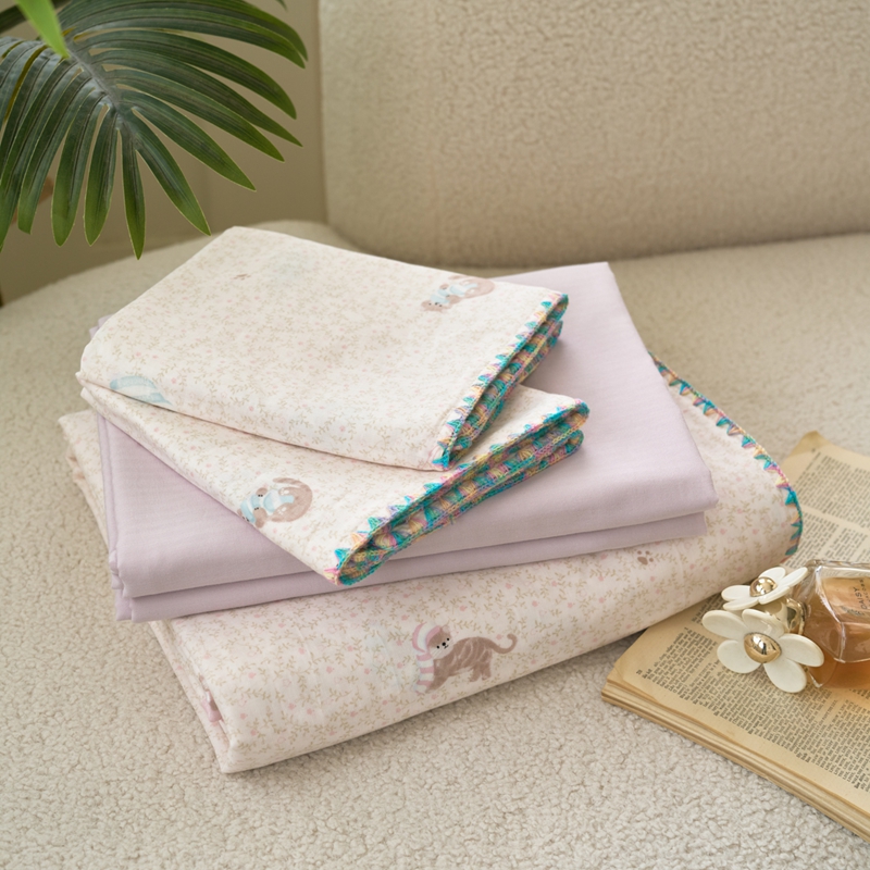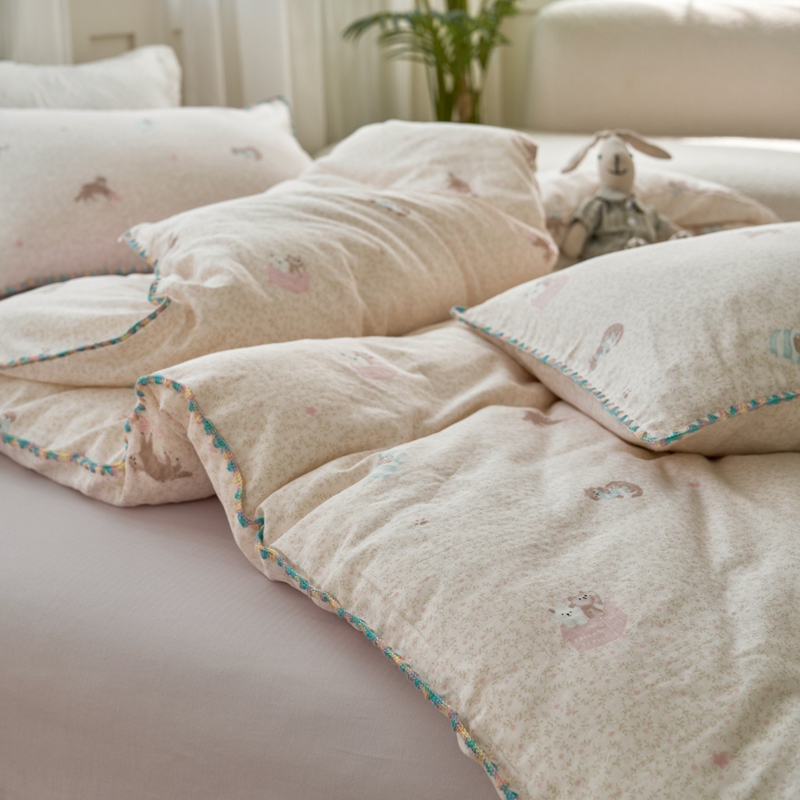 (总)洋铭区(原狠狠爱) 2026新款春季全棉彩边双层纱四件套,爱心宝莉,波斯小懒狗,繁花兔兔,格格小熊,海蓝小木马,红格小马,红枣小兔,花朵兔兔,焦糖小熊,兰花香,绿芽小马,萌宠小分队,奶茶蝴蝶结,奶糕熊熊,汽车派对,桃桃粉花,甜果小象,图图小狮子,幸运小可爱,熊猫嘟嘟,遇见粉花,月光宝宝