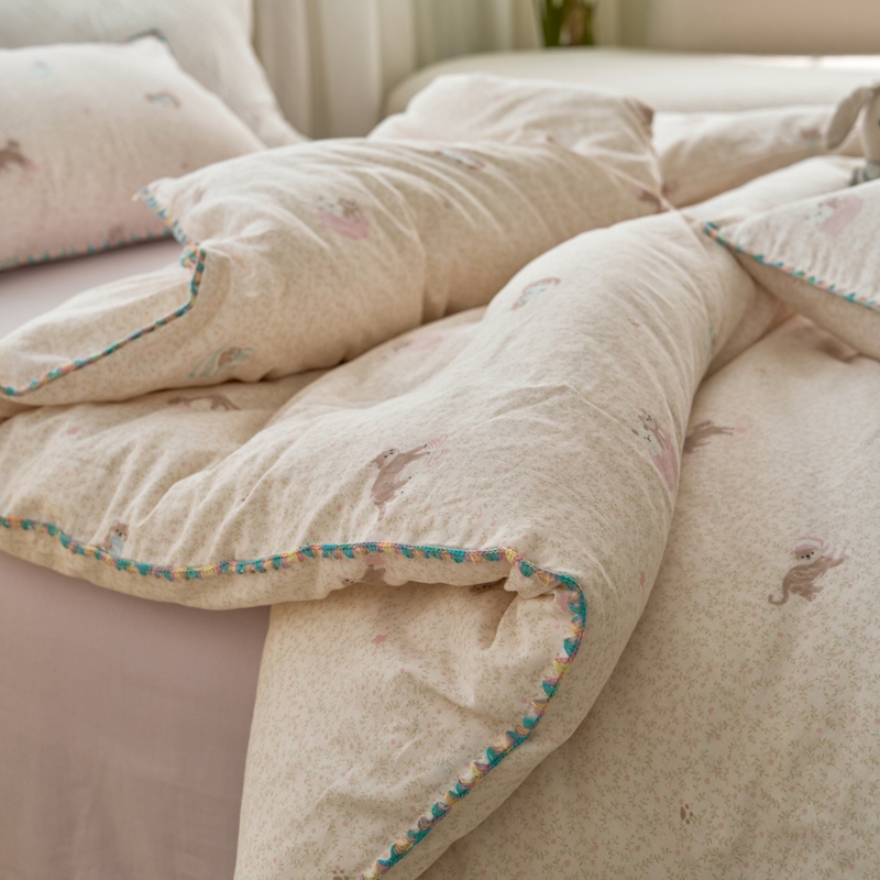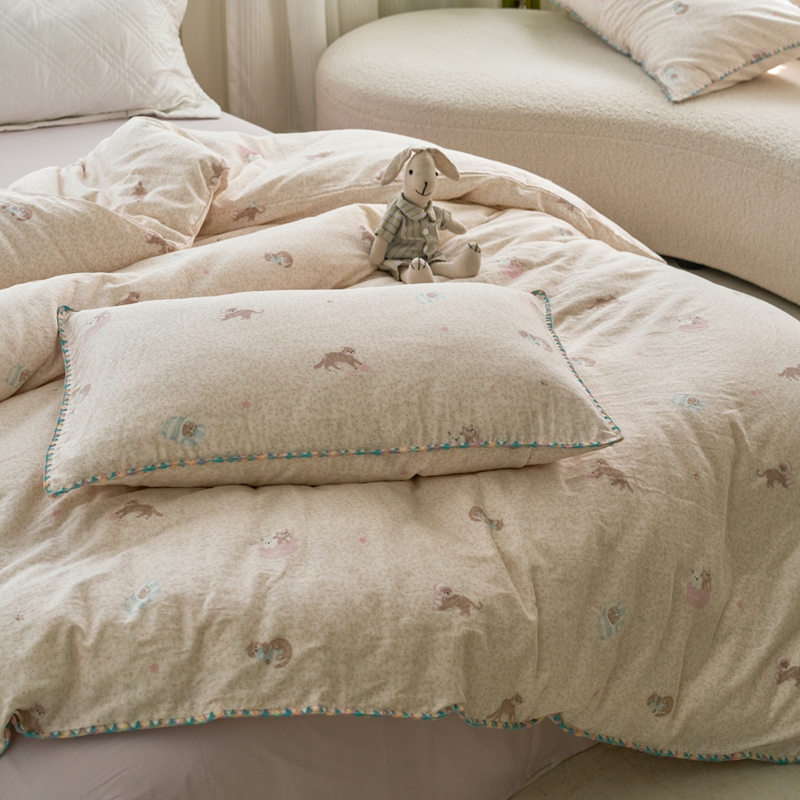 商品名称:洋铭区(原狠狠爱) 2025新款全棉彩边双层四件套 小懒猫