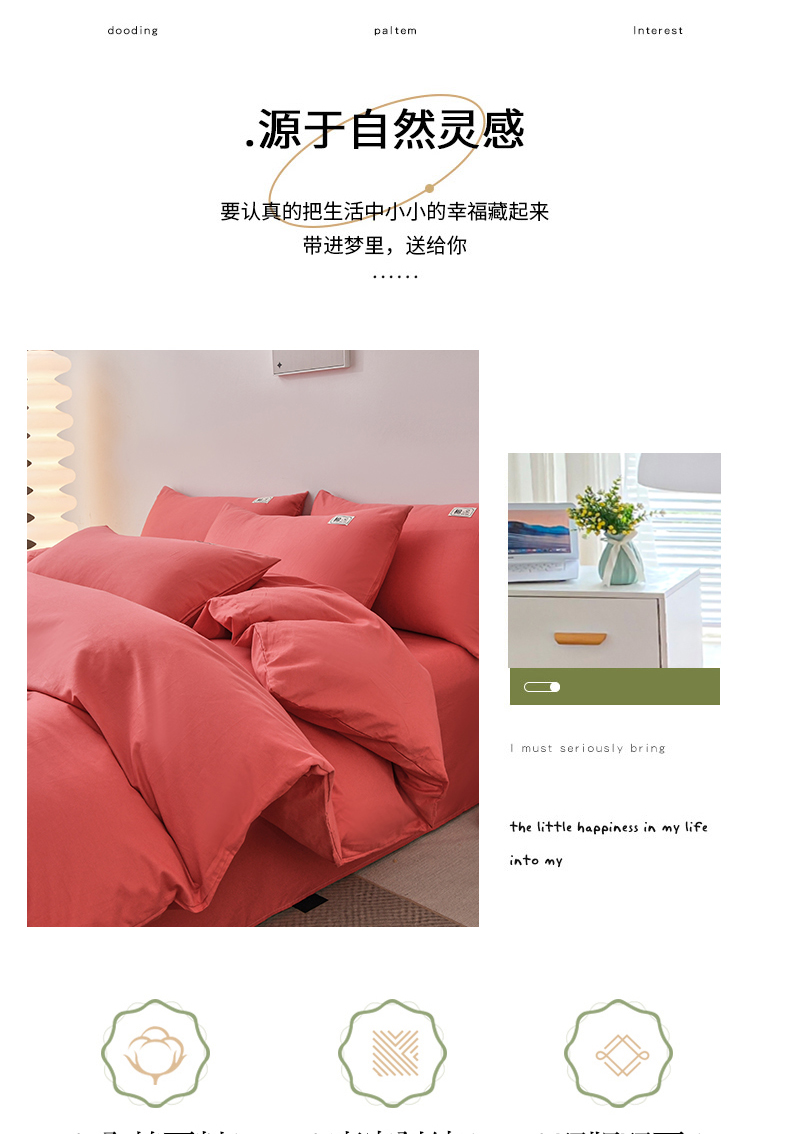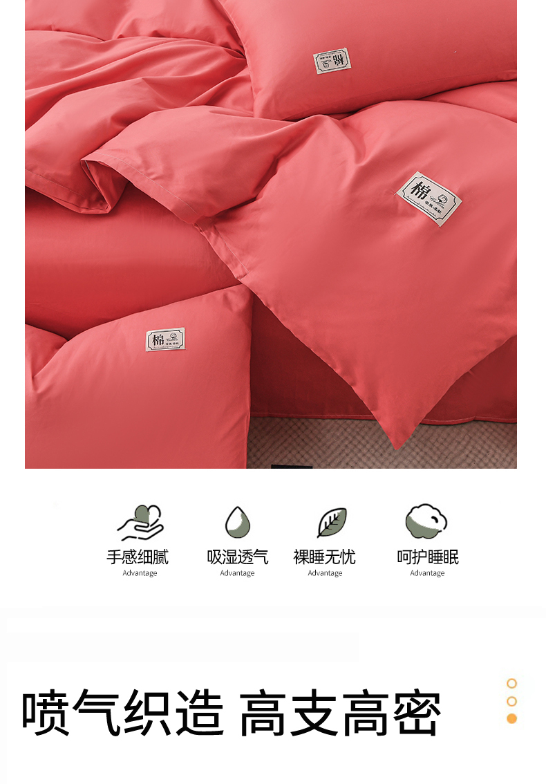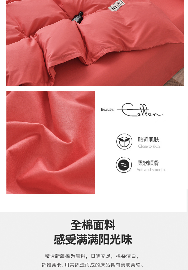商品名称:宇彬家纺 2025直播新款13374全棉母婴级简约轻奢贴画纯色单被套斜纹贡缎新疆长绒贴标款无印风系列 简约-宝石红